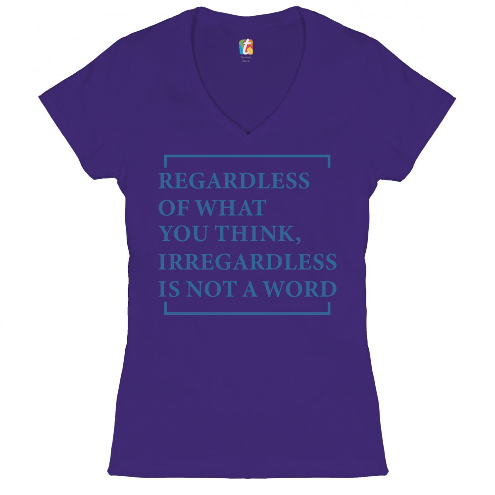 IRREGARDLESS IS NOT A WORD women's v-neck t-shirt funny english grammar tee purple