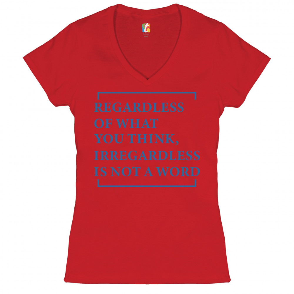 IRREGARDLESS IS NOT A WORD women's v-neck t-shirt funny english grammar tee red