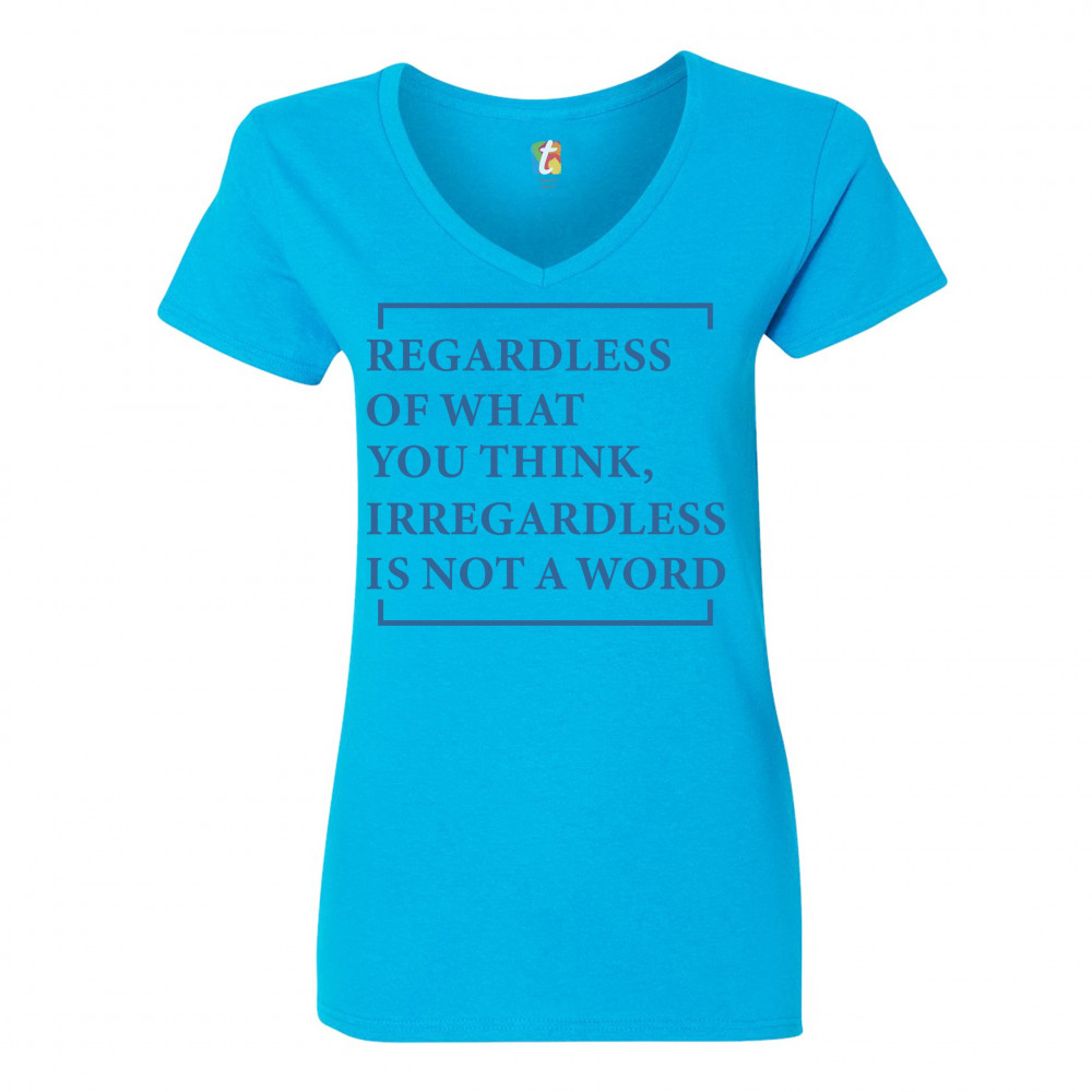 IRREGARDLESS IS NOT A WORD women's v-neck t-shirt funny english grammar tee turquoise