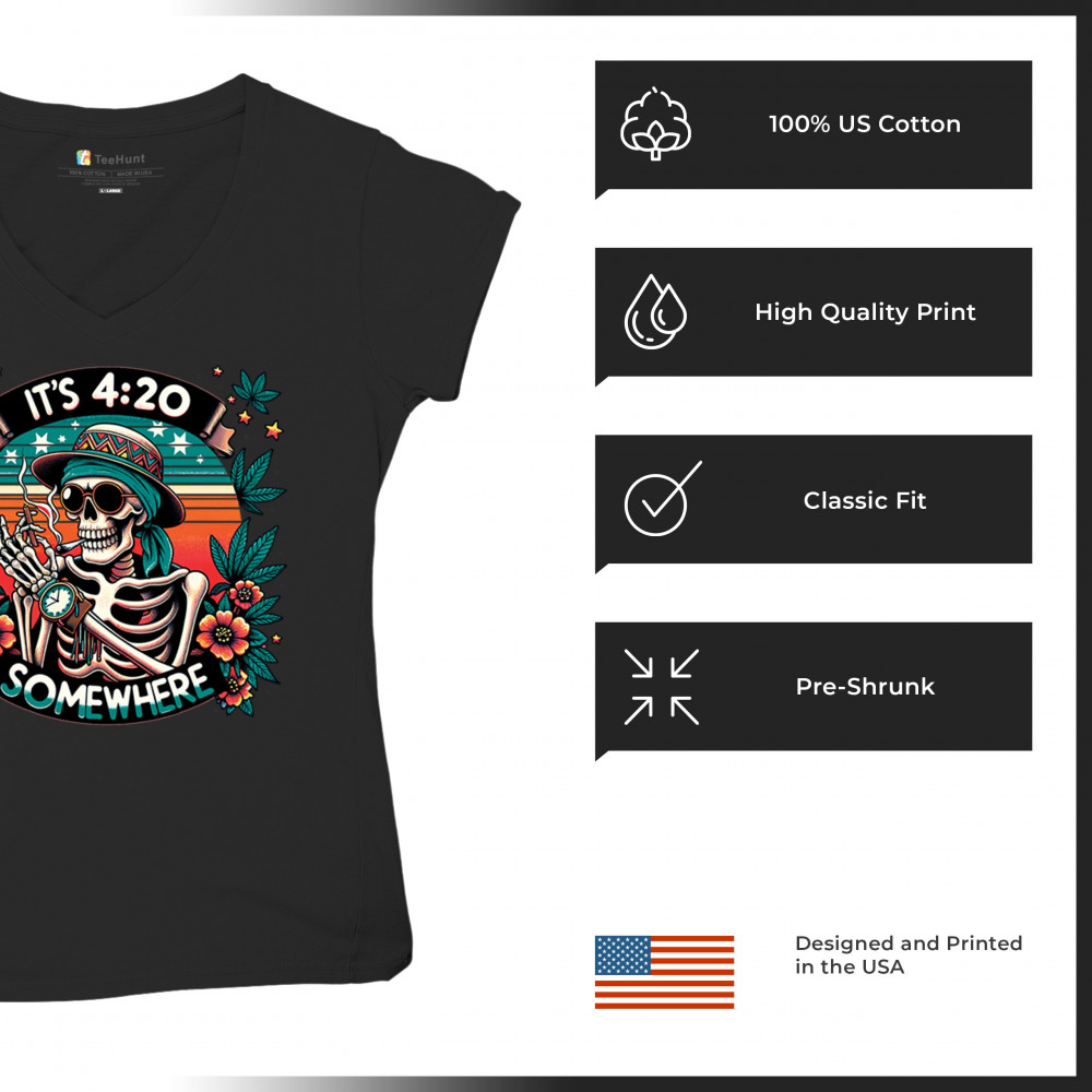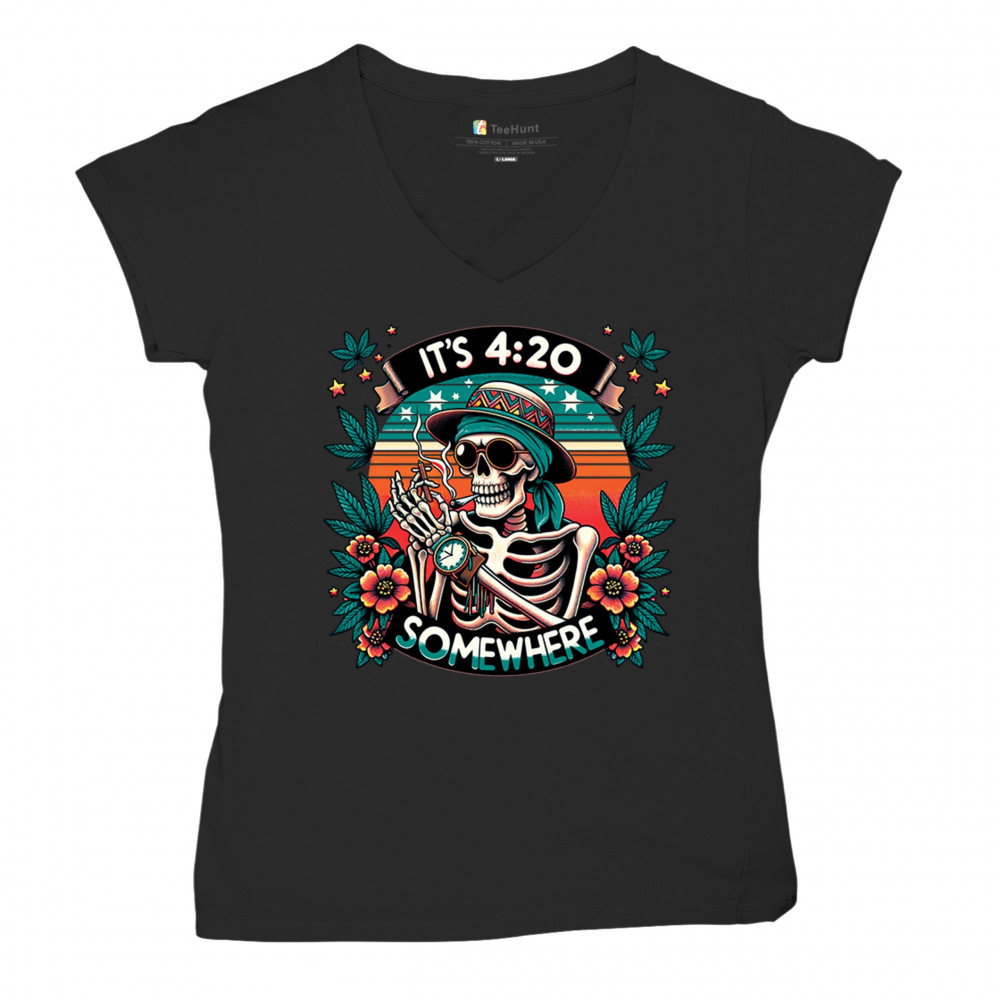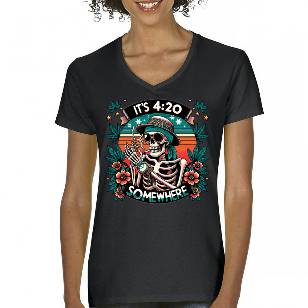 Get lifted with this “It’s 4:20 Somewhere†design featuring a joint-smoking skeleton, tropical sunset, and Deadhead stoner vibes. With bold trippy colors and beachy weed art, this tee is perfect for April 20 parties, summer festivals, and cannabis lovers living the high life.