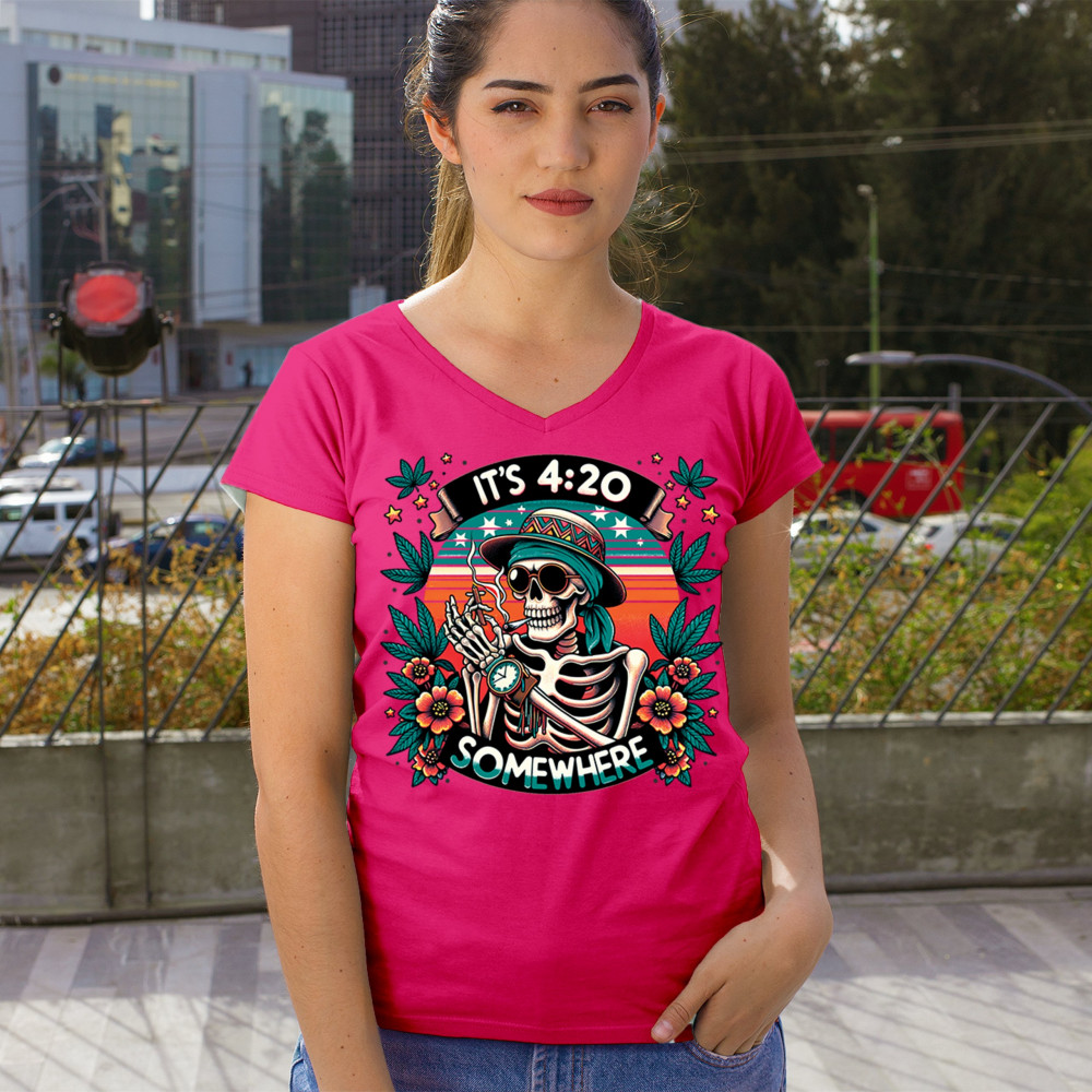 Get lifted with this “It’s 4:20 Somewhere†design featuring a joint-smoking skeleton, tropical sunset, and Deadhead stoner vibes. With bold trippy colors and beachy weed art, this tee is perfect for April 20 parties, summer festivals, and cannabis lovers living the high life.
