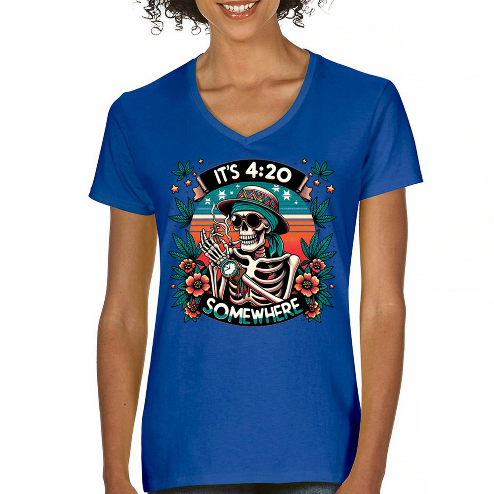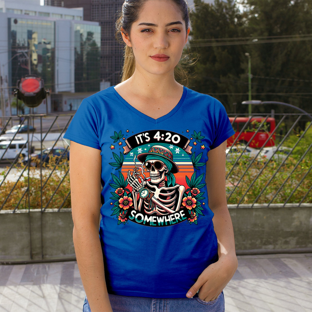 Get lifted with this “It’s 4:20 Somewhere†design featuring a joint-smoking skeleton, tropical sunset, and Deadhead stoner vibes. With bold trippy colors and beachy weed art, this tee is perfect for April 20 parties, summer festivals, and cannabis lovers living the high life.