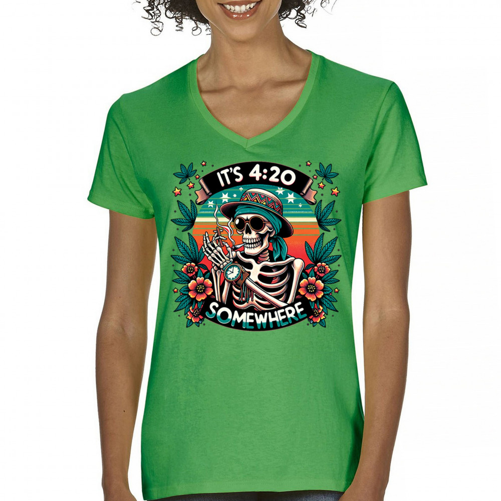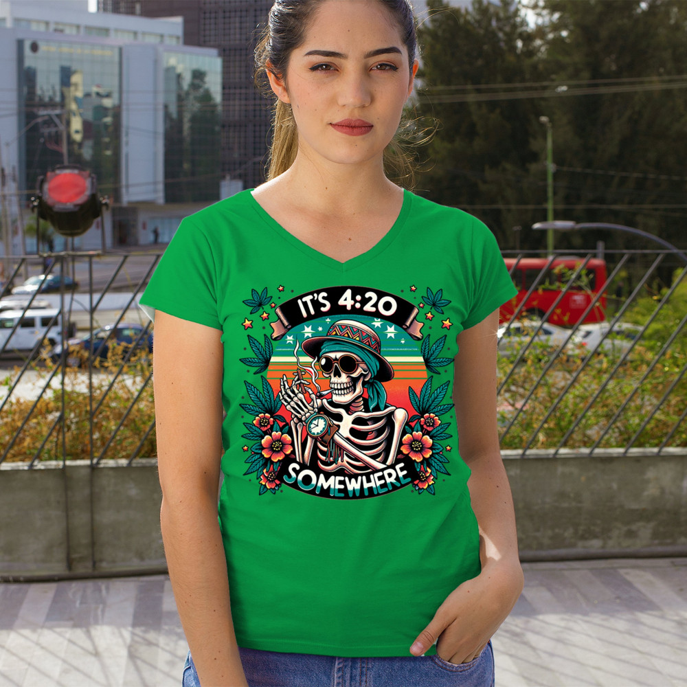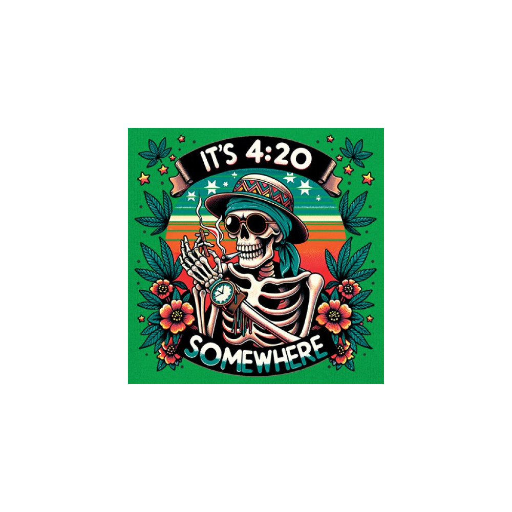 Get lifted with this “It’s 4:20 Somewhere†design featuring a joint-smoking skeleton, tropical sunset, and Deadhead stoner vibes. With bold trippy colors and beachy weed art, this tee is perfect for April 20 parties, summer festivals, and cannabis lovers living the high life.