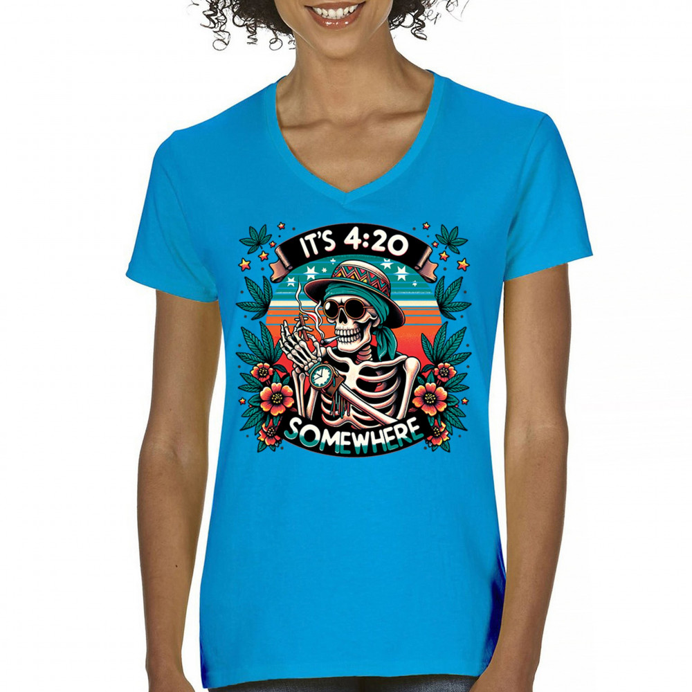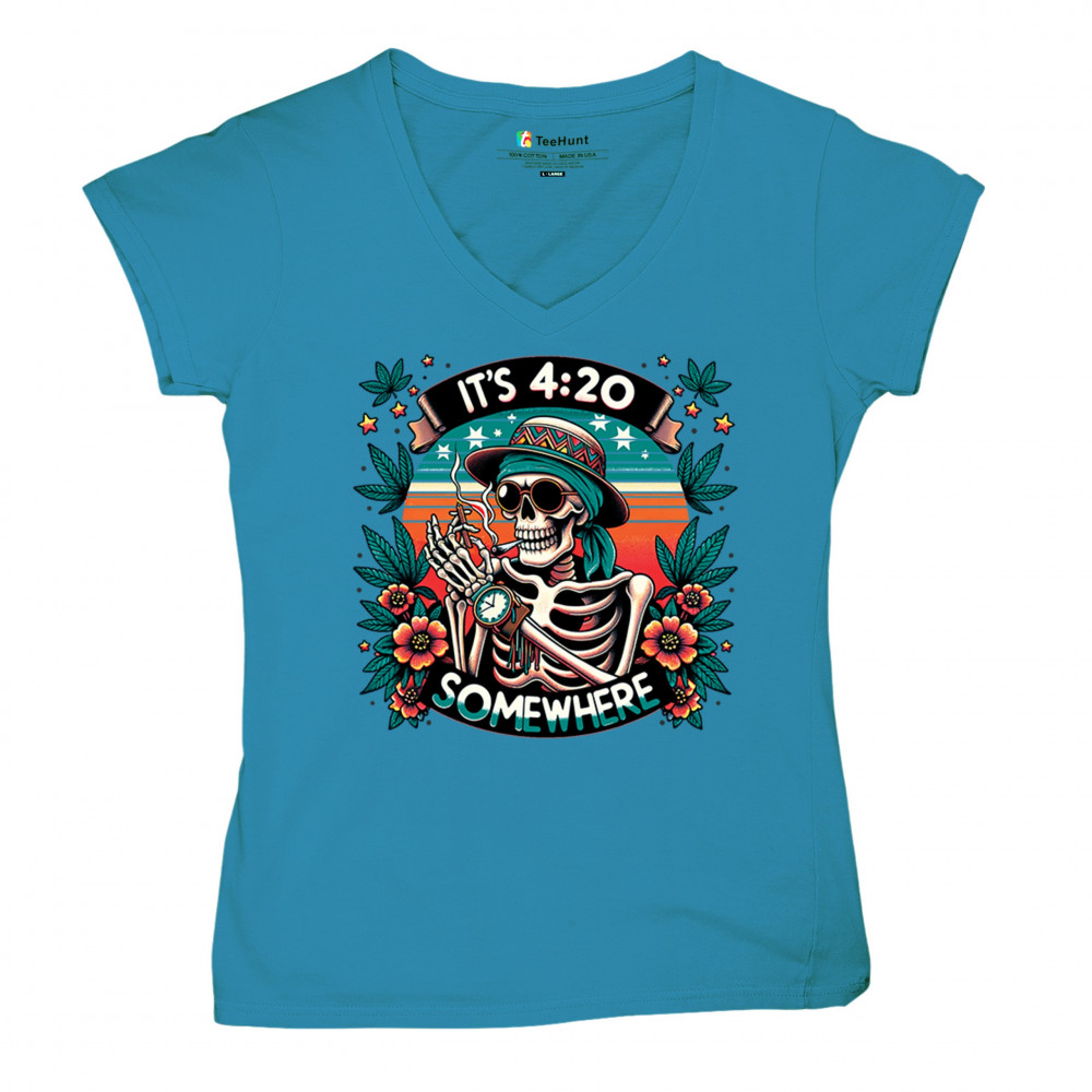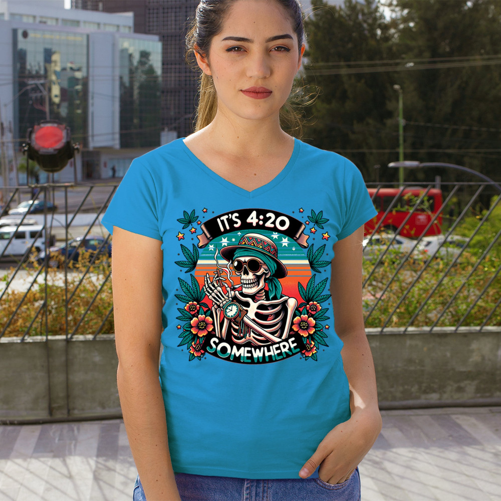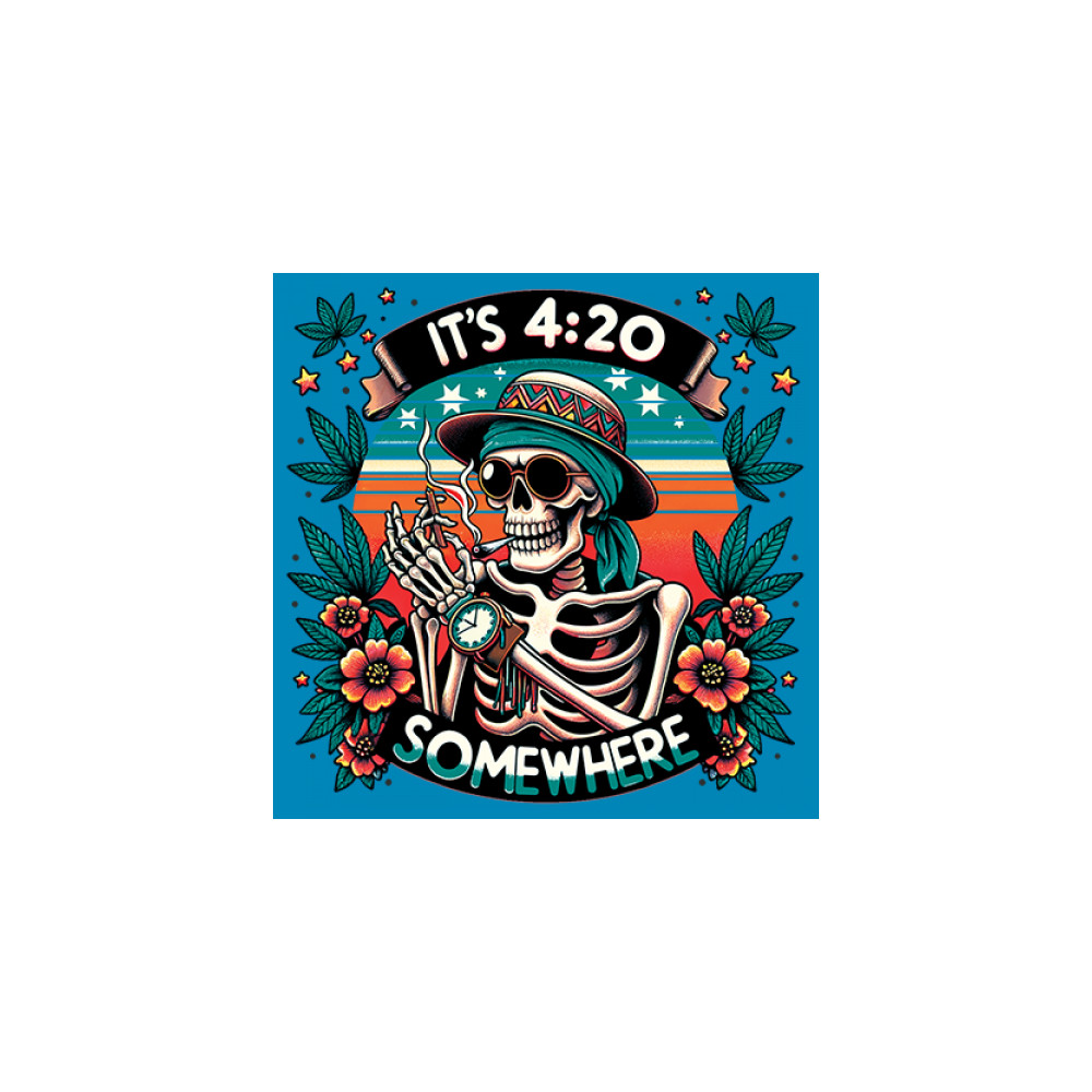 Get lifted with this “It’s 4:20 Somewhere†design featuring a joint-smoking skeleton, tropical sunset, and Deadhead stoner vibes. With bold trippy colors and beachy weed art, this tee is perfect for April 20 parties, summer festivals, and cannabis lovers living the high life.