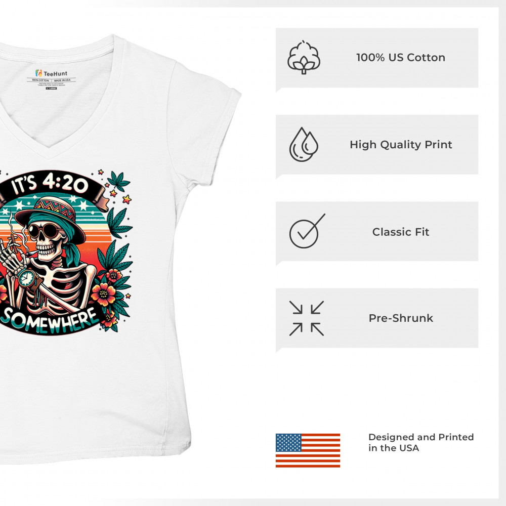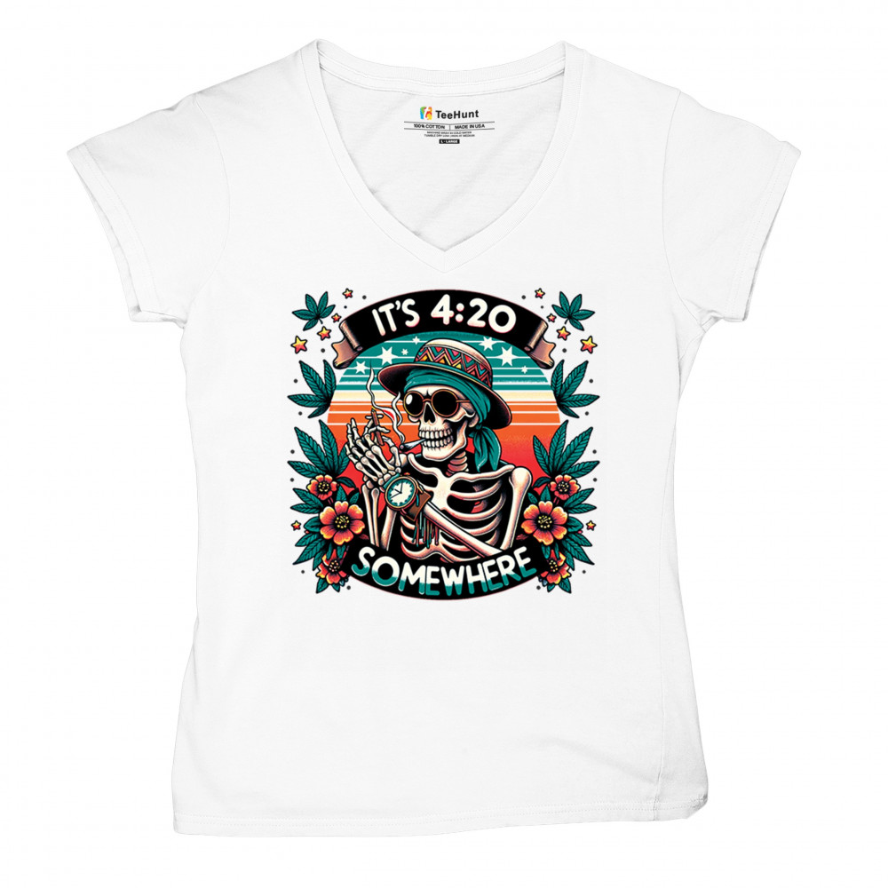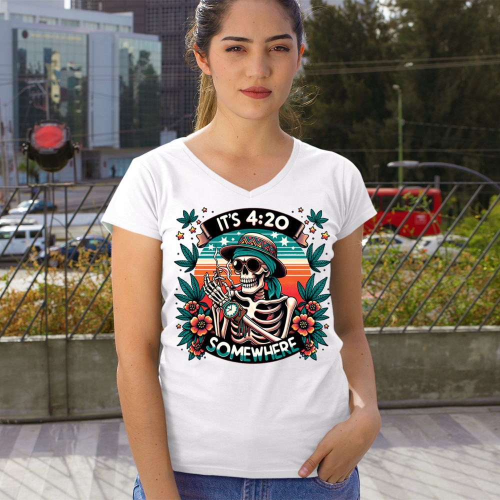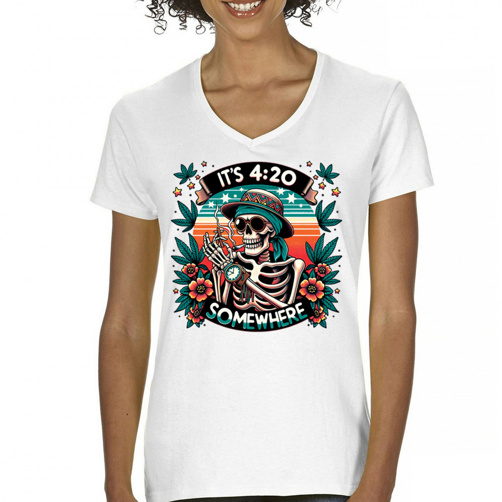 Get lifted with this “It’s 4:20 Somewhere†design featuring a joint-smoking skeleton, tropical sunset, and Deadhead stoner vibes. With bold trippy colors and beachy weed art, this tee is perfect for April 20 parties, summer festivals, and cannabis lovers living the high life.