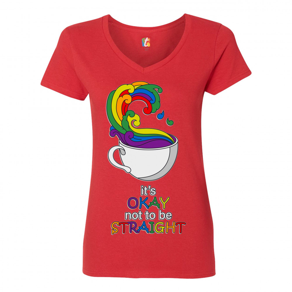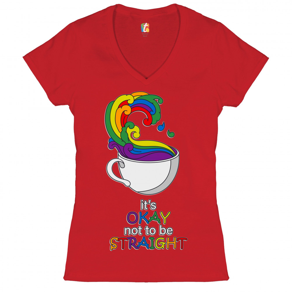 IT'S OKAY NOT TO BE STRAIGHT women's v-neck t-shirt gay acceptance lgbtq tee red