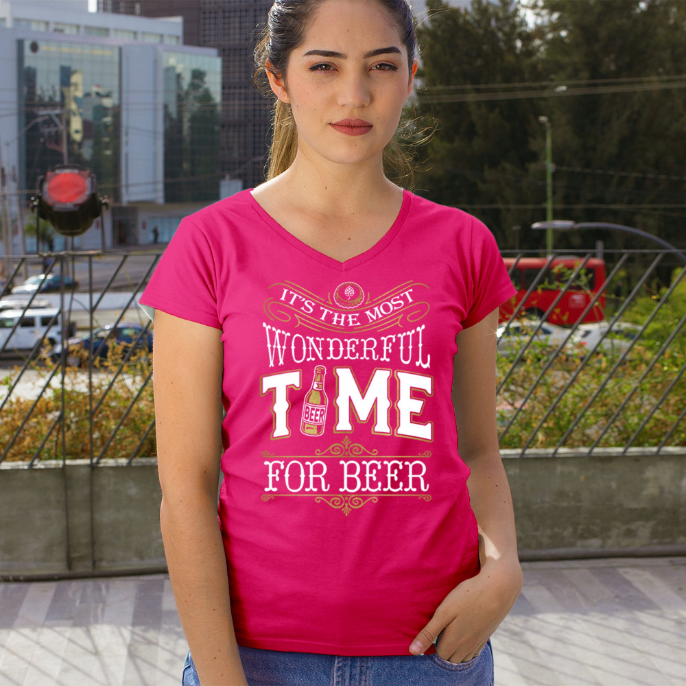 Bring some holiday cheer to your wardrobe with our "It's The Most Wonderful Time for Beer" design. Featuring a festive beer bottle and playful text, this design is perfect for adding humor to holiday gatherings, beer festivals, or any casual outing. Ideal for beer lovers and brew enthusiasts, it makes a fantastic gift for those who appreciate beer-themed fun. Embrace the season and your love for beer with this delightful and humorous design!