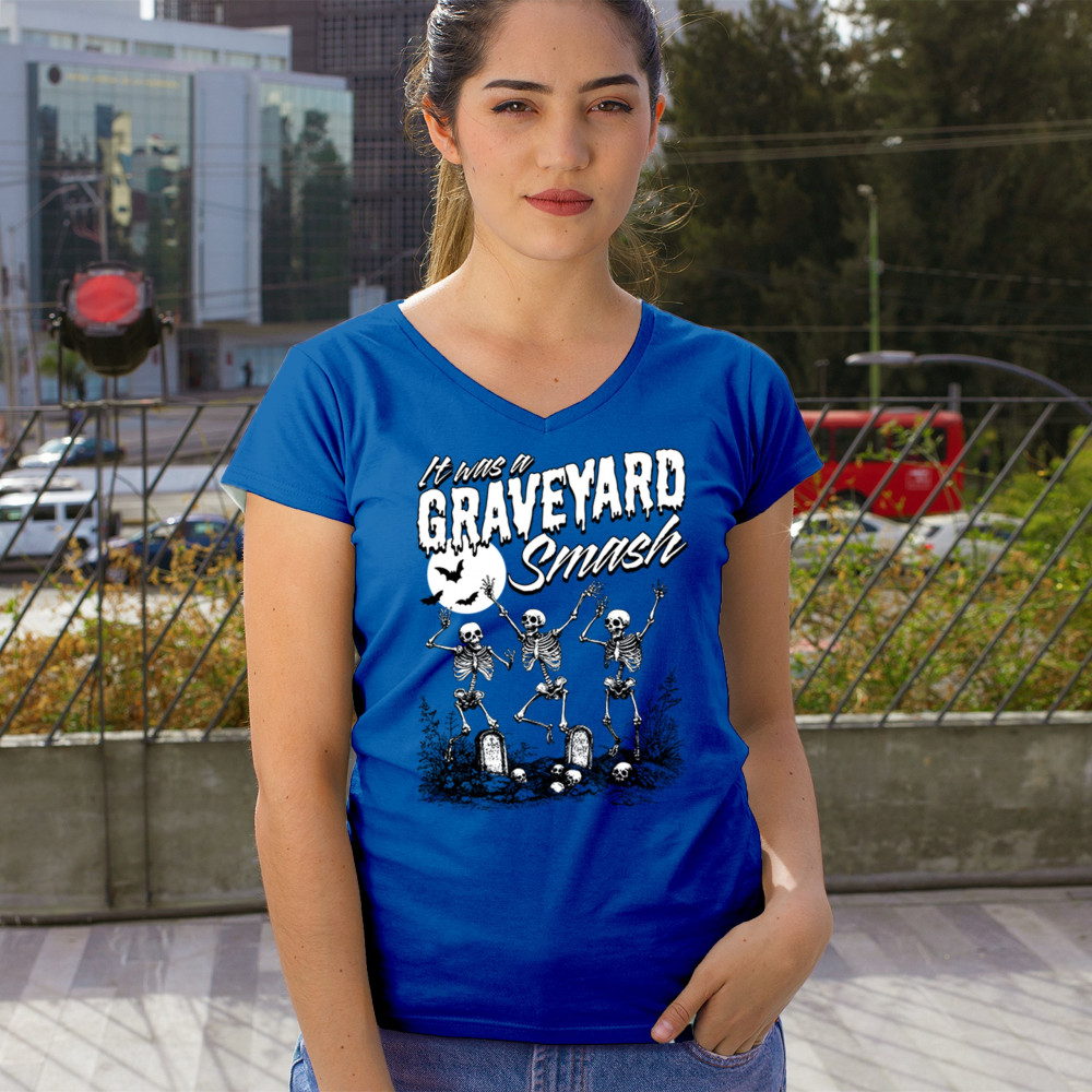 Add a touch of spooky fun to your Halloween attire with this "Graveyard Smash" design, showcasing skeletons dancing under the moonlight in a graveyard. Ideal for anyone who loves Halloween, this graphic tee is perfect for parties, haunted houses, or casual trick-or-treating. Made from high-quality materials, it offers both comfort and style, ensuring you look great while embracing the festive spirit. Available in multiple sizes, this shirt is a must-have for your Halloween collection.