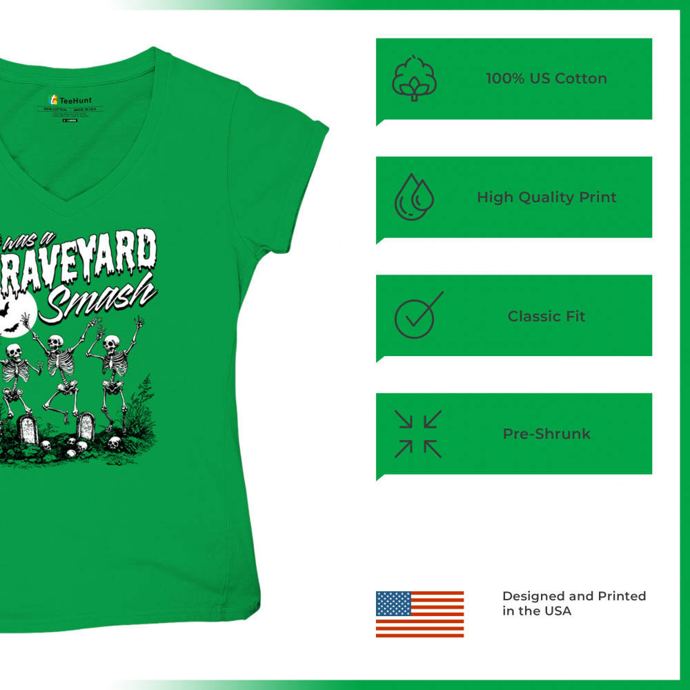 Celebrate Halloween with a fun "Graveyard Smash" design featuring dancing skeletons. Perfect for parties and haunted house events!