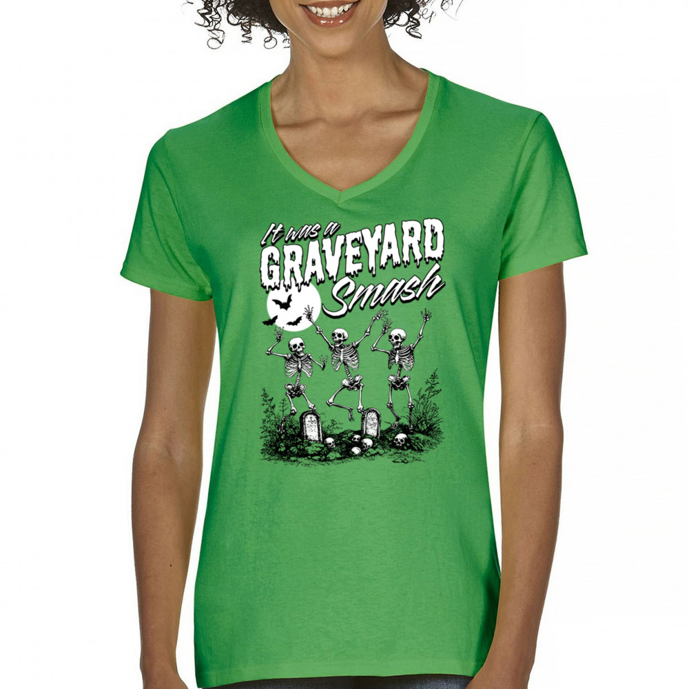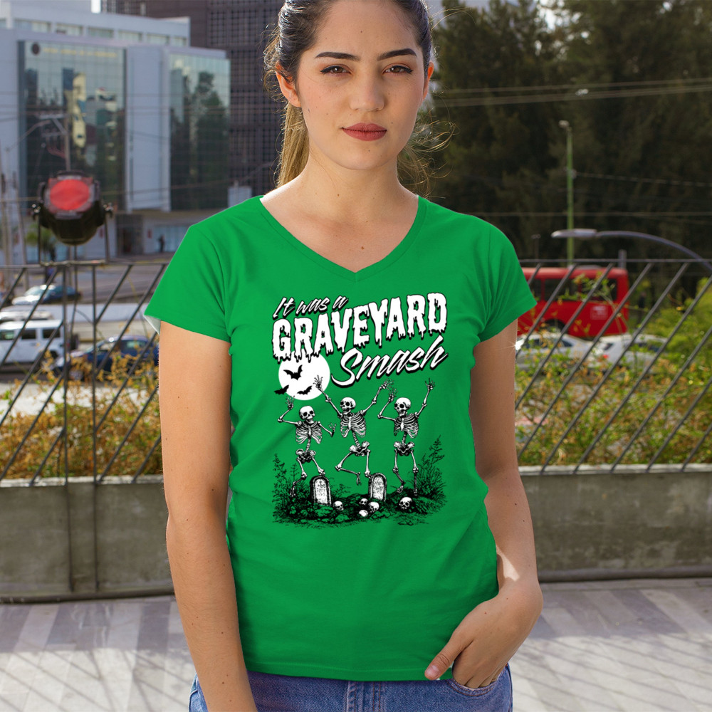 Add a touch of spooky fun to your Halloween attire with this "Graveyard Smash" design, showcasing skeletons dancing under the moonlight in a graveyard. Ideal for anyone who loves Halloween, this graphic tee is perfect for parties, haunted houses, or casual trick-or-treating. Made from high-quality materials, it offers both comfort and style, ensuring you look great while embracing the festive spirit. Available in multiple sizes, this shirt is a must-have for your Halloween collection.