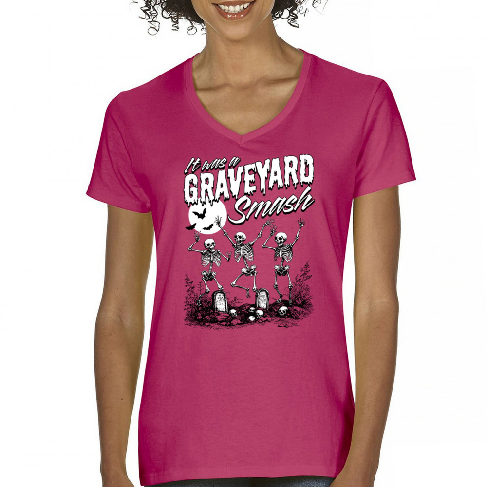 Celebrate Halloween with a fun "Graveyard Smash" design featuring dancing skeletons. Perfect for parties and haunted house events!