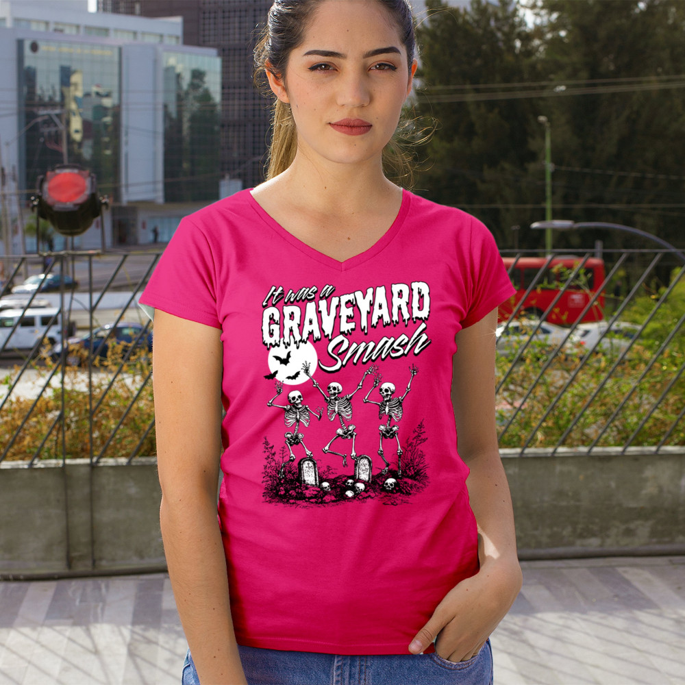 Add a touch of spooky fun to your Halloween attire with this "Graveyard Smash" design, showcasing skeletons dancing under the moonlight in a graveyard. Ideal for anyone who loves Halloween, this graphic tee is perfect for parties, haunted houses, or casual trick-or-treating. Made from high-quality materials, it offers both comfort and style, ensuring you look great while embracing the festive spirit. Available in multiple sizes, this shirt is a must-have for your Halloween collection.