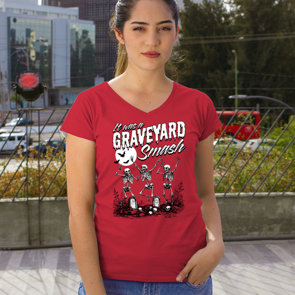 Add a touch of spooky fun to your Halloween attire with this "Graveyard Smash" design, showcasing skeletons dancing under the moonlight in a graveyard. Ideal for anyone who loves Halloween, this graphic tee is perfect for parties, haunted houses, or casual trick-or-treating. Made from high-quality materials, it offers both comfort and style, ensuring you look great while embracing the festive spirit. Available in multiple sizes, this shirt is a must-have for your Halloween collection.