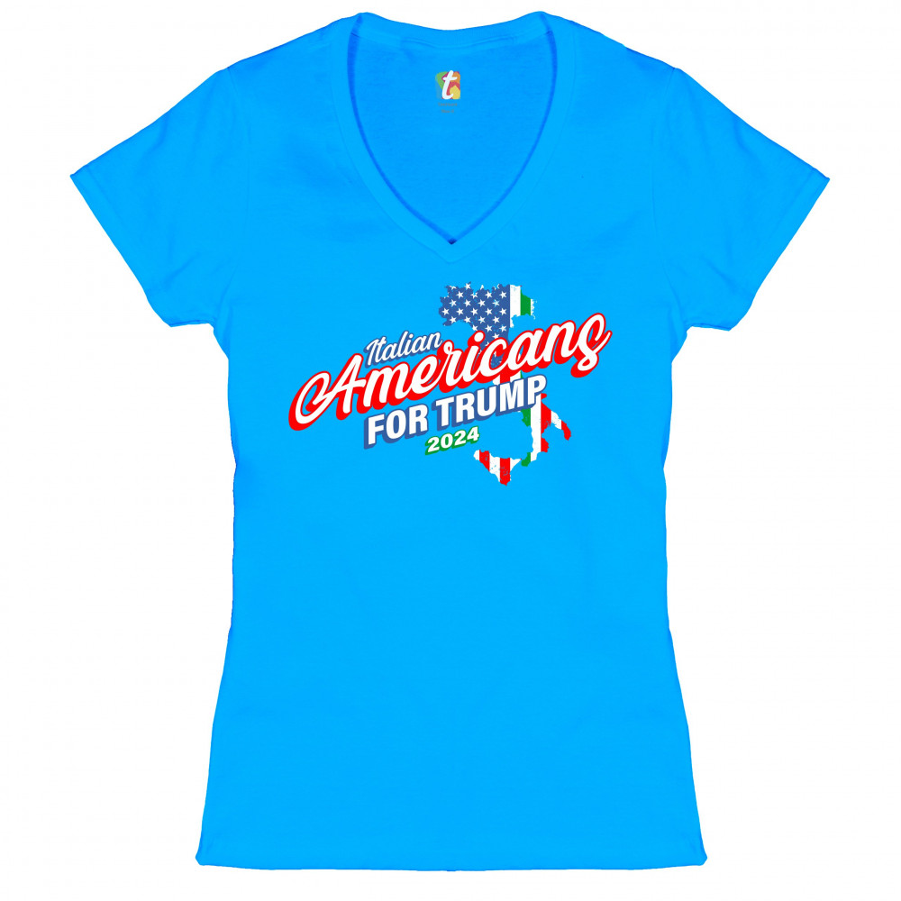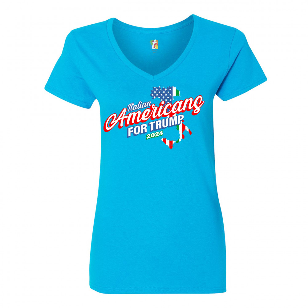 ITALIAN AMERICANS FOR TRUMP 2024 women's v-neck t-shirt keep america great tee turquoise