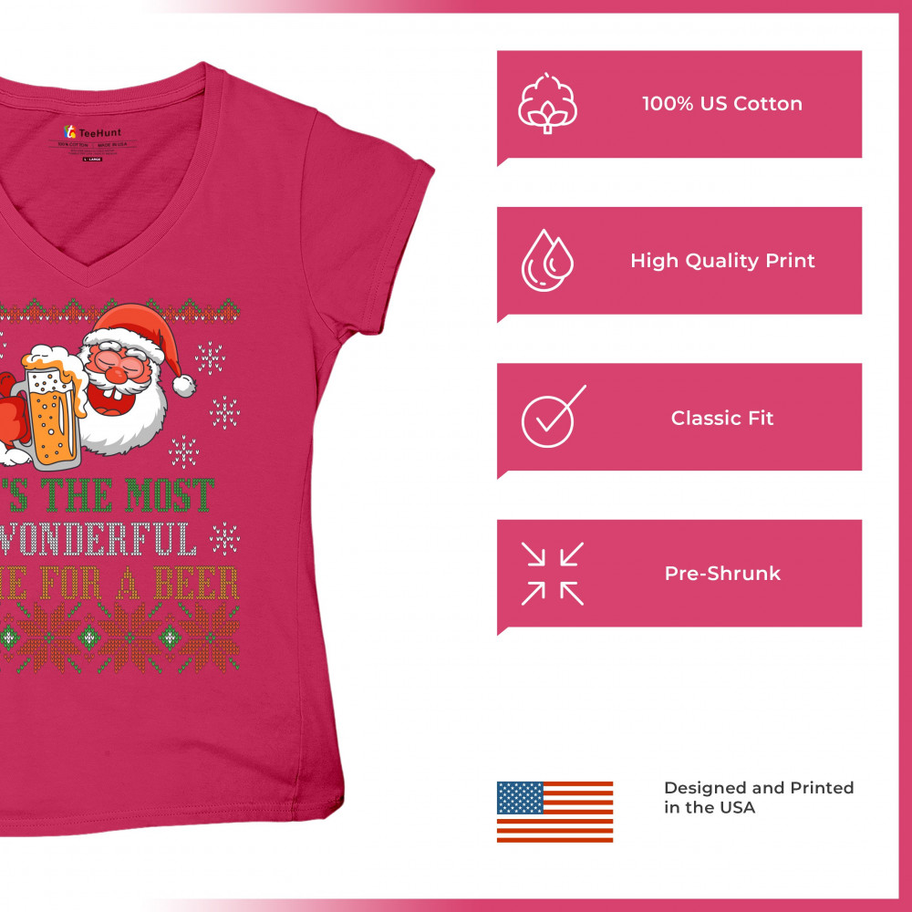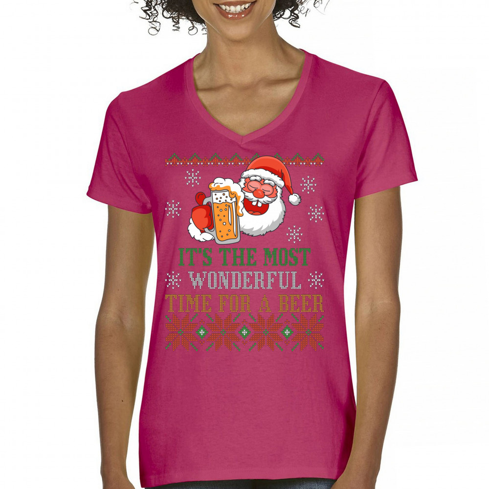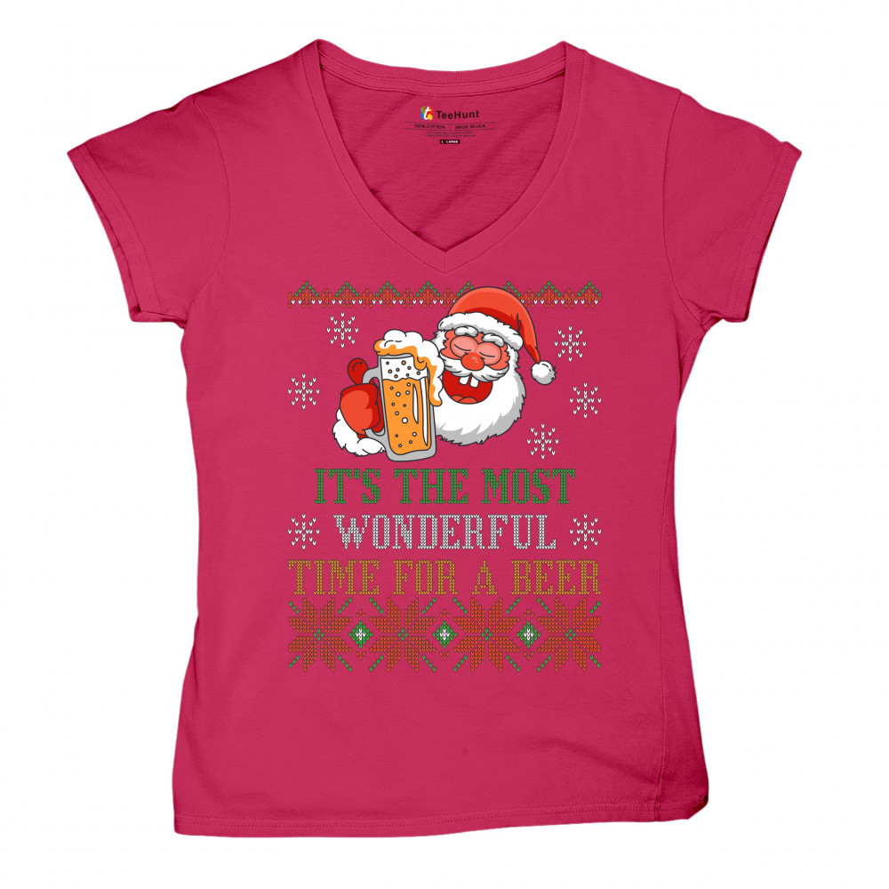 IT'S THE MOST WONDERFUL TIME FOR A BEER its the most wonderful time for a beer women's v-neck t-shirt ugly sweater tee pink