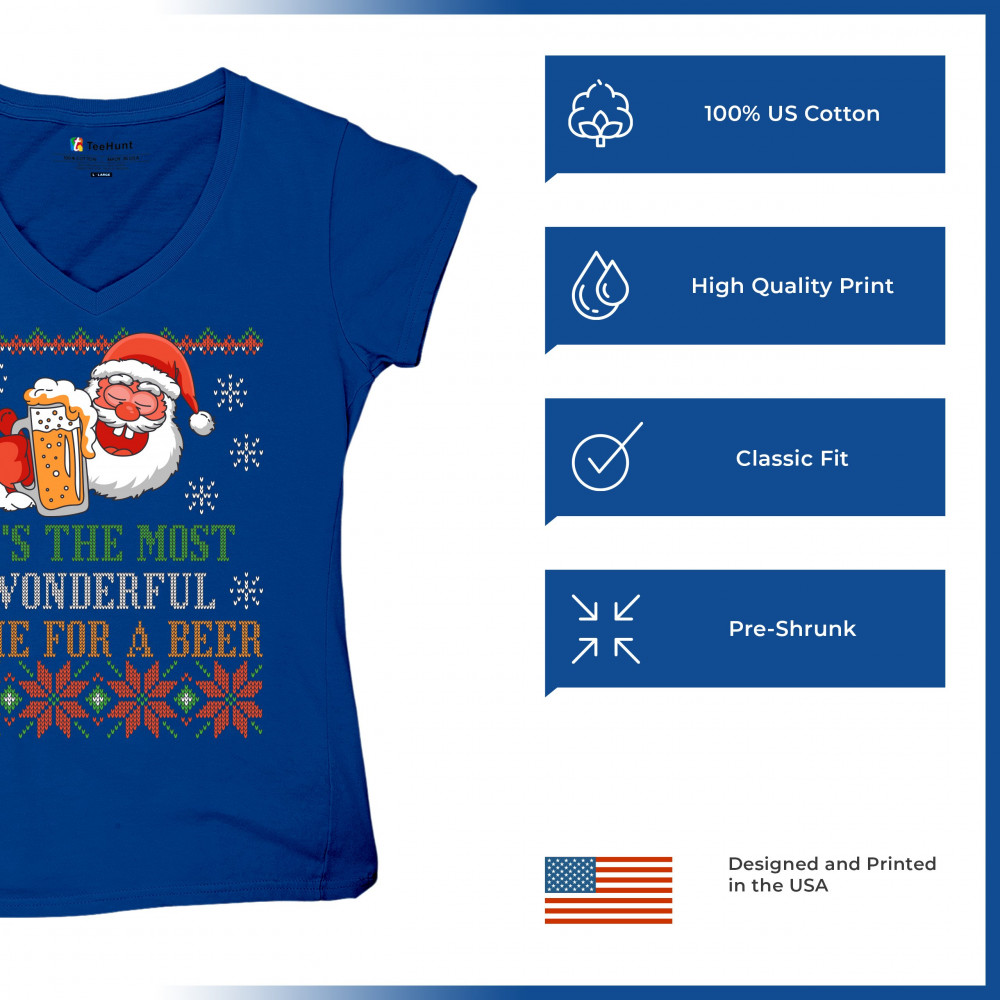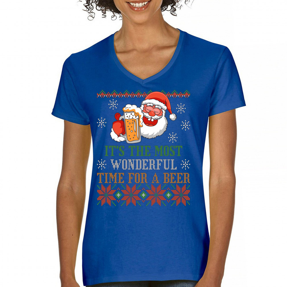 IT'S THE MOST WONDERFUL TIME FOR A BEER its the most wonderful time for a beer women's v-neck t-shirt ugly sweater tee royal blue