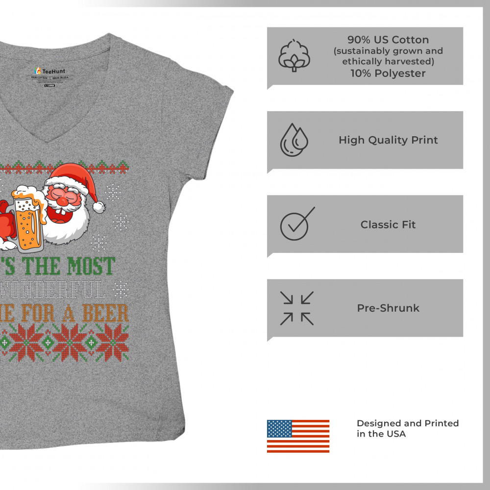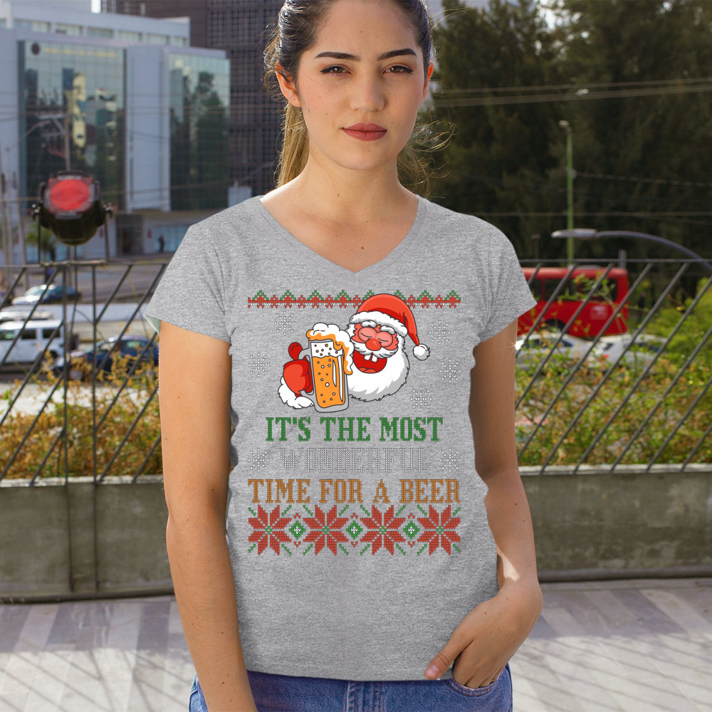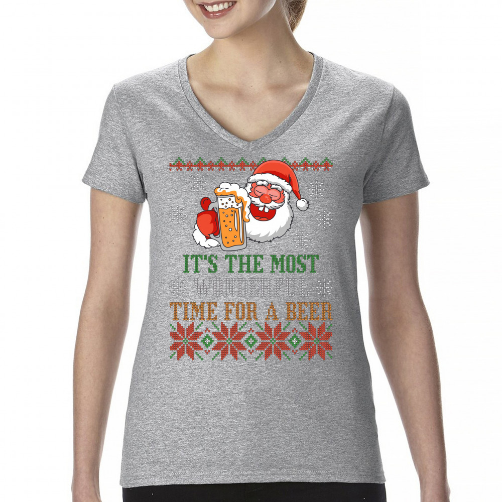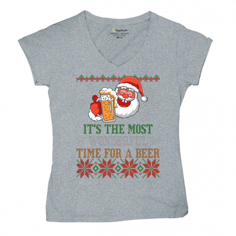 IT'S THE MOST WONDERFUL TIME FOR A BEER its the most wonderful time for a beer women's v-neck t-shirt ugly sweater tee gray