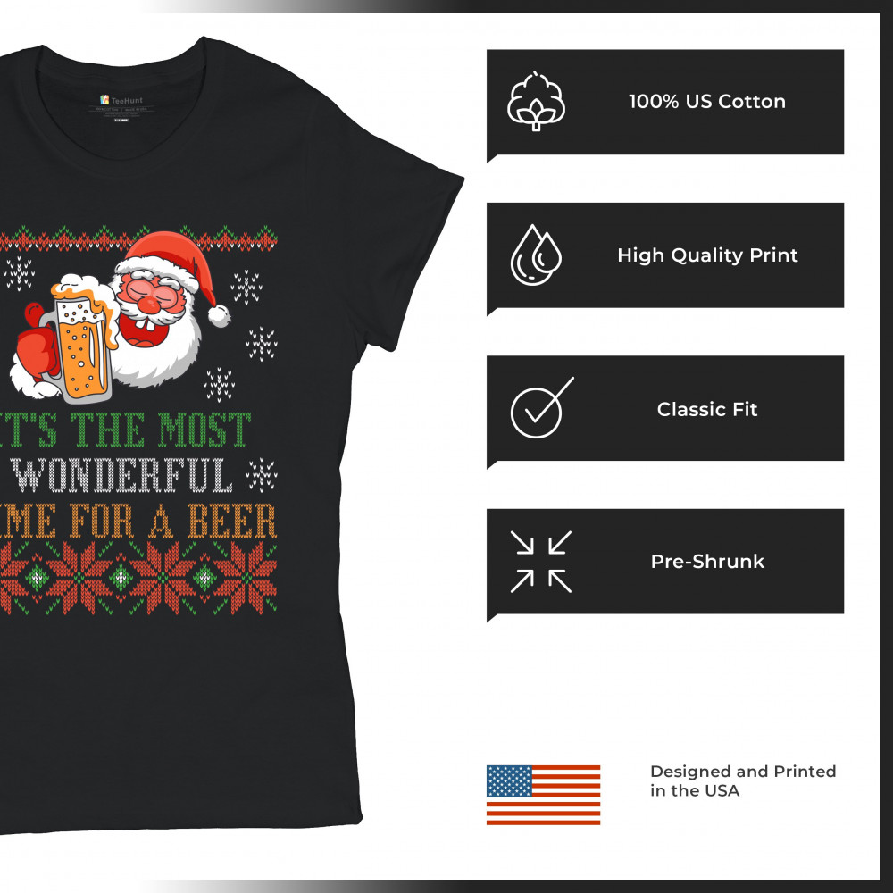 IT'S THE MOST WONDERFUL TIME FOR A BEER t-shirt ugly sweater women's tee black