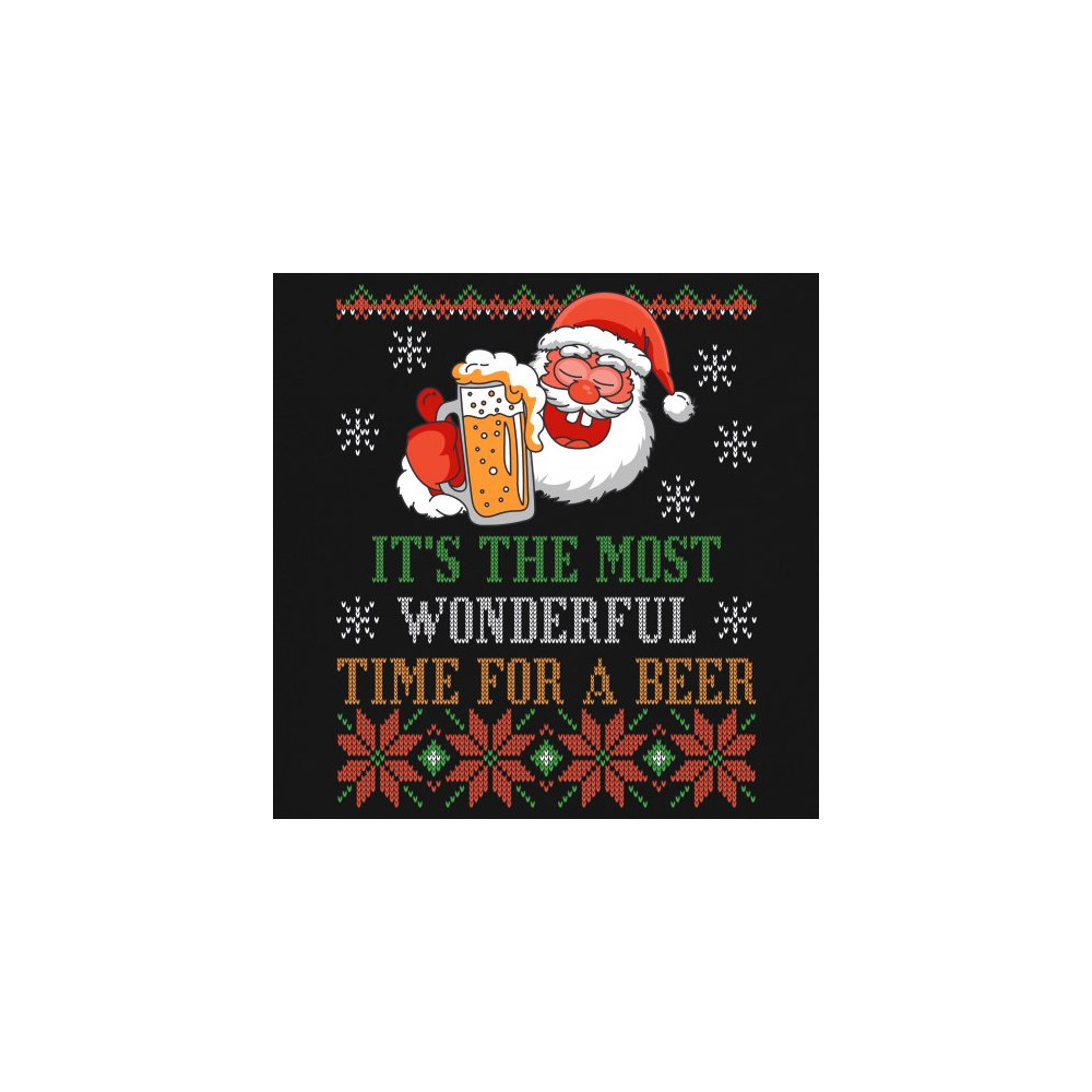 A print saying: "It's the Most Wonderful Time for a Beer" and featuring Santa Claus holding a glass of beer. The print is designed as an ugly sweater. Amazing choice for a single person who wants to make people smile and spread positive vibes on Christmas