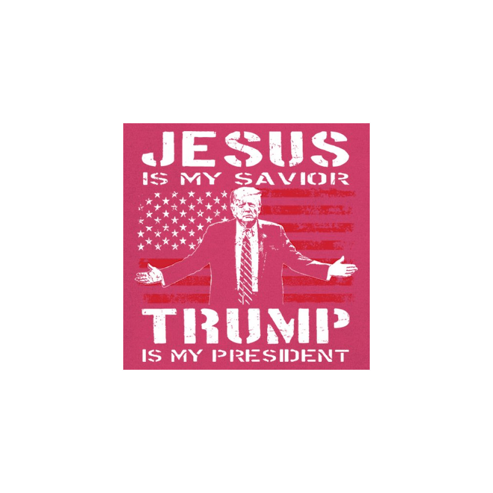 Express your unwavering faith and patriotism with the "Jesus is My Savior, Trump is My President" design. Perfect for conservatives, Republicans, and Trump supporters, this bold graphic combines spiritual devotion with a commitment to America First values. Celebrate the 47th President and the fight for freedom with this standout piece at rallies, events, or as a unique gift.