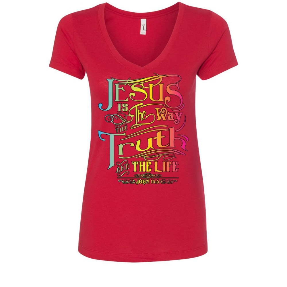 JESUS IS THE WAY women's v-neck t-shirt truth life bible religion god lord pray red