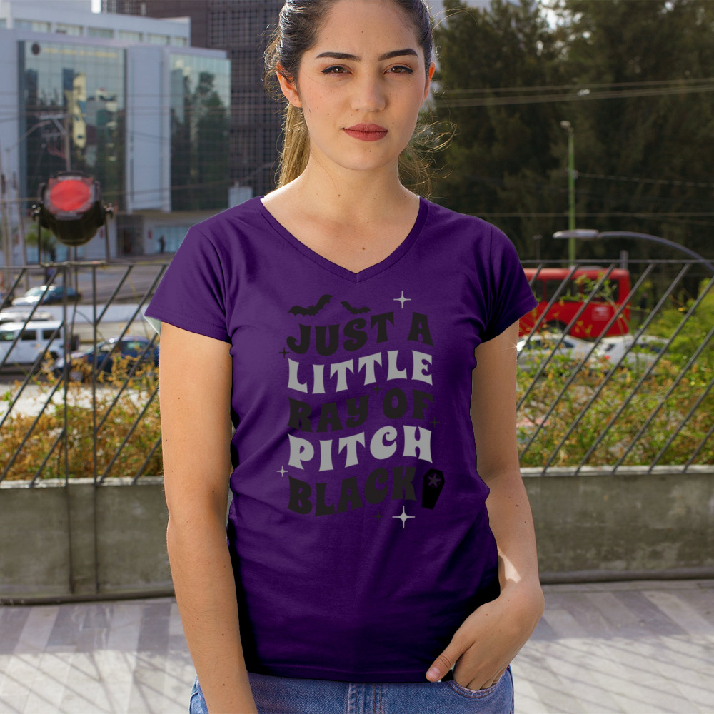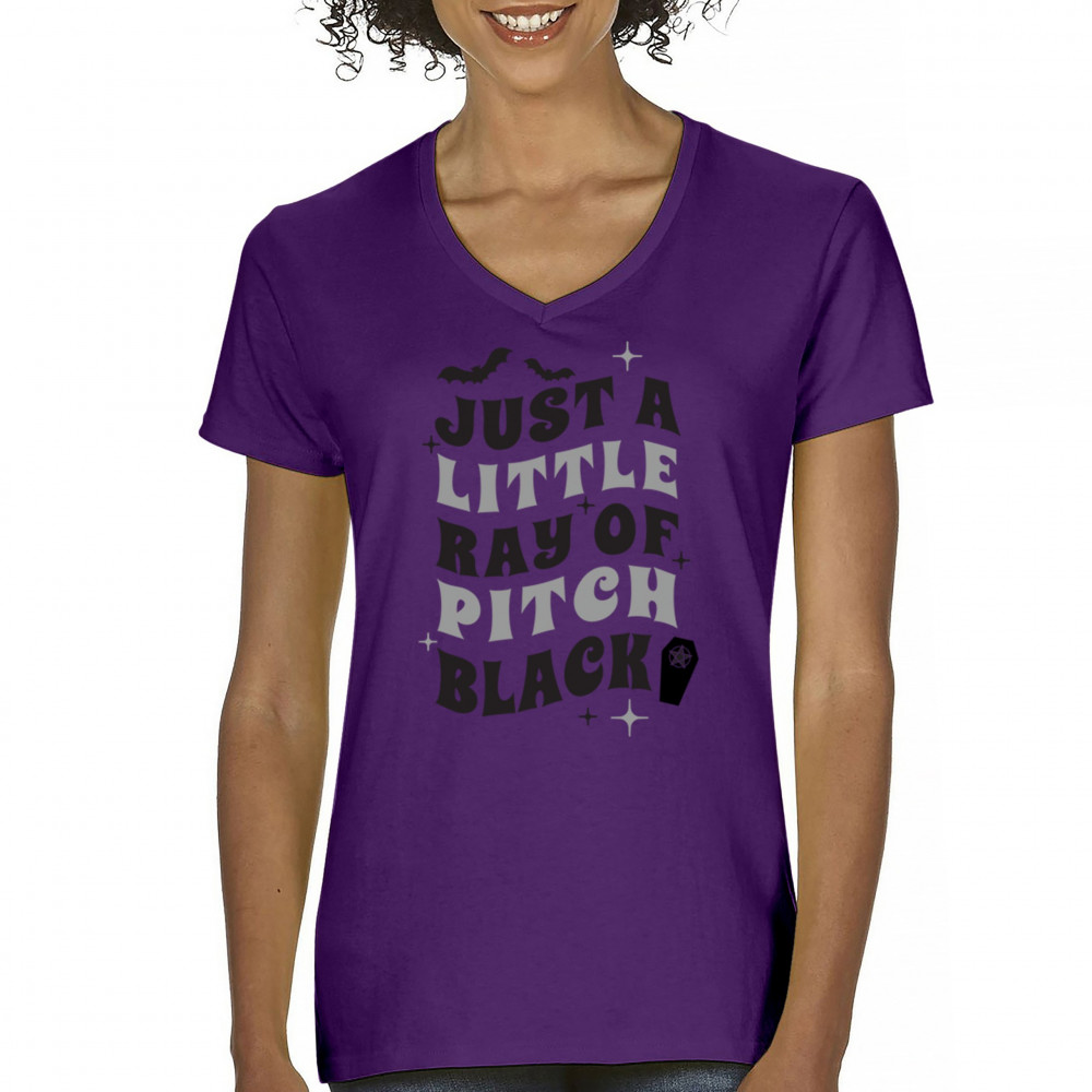 Showcase your dark humor with the "Just a Little Ray of Pitch Black" design—perfect for Halloween or everyday gothic style.