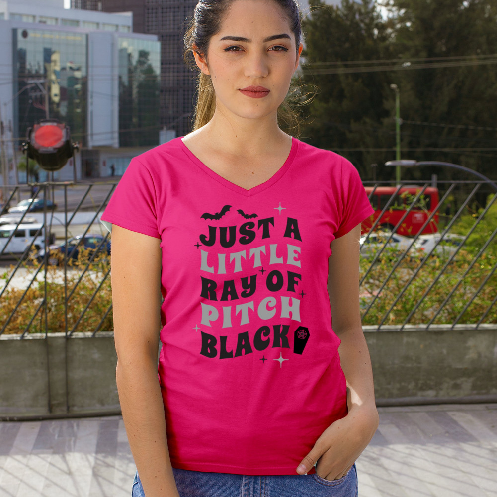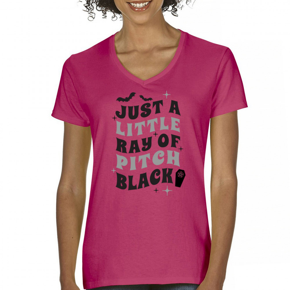 Showcase your dark humor with the "Just a Little Ray of Pitch Black" design—perfect for Halloween or everyday gothic style.