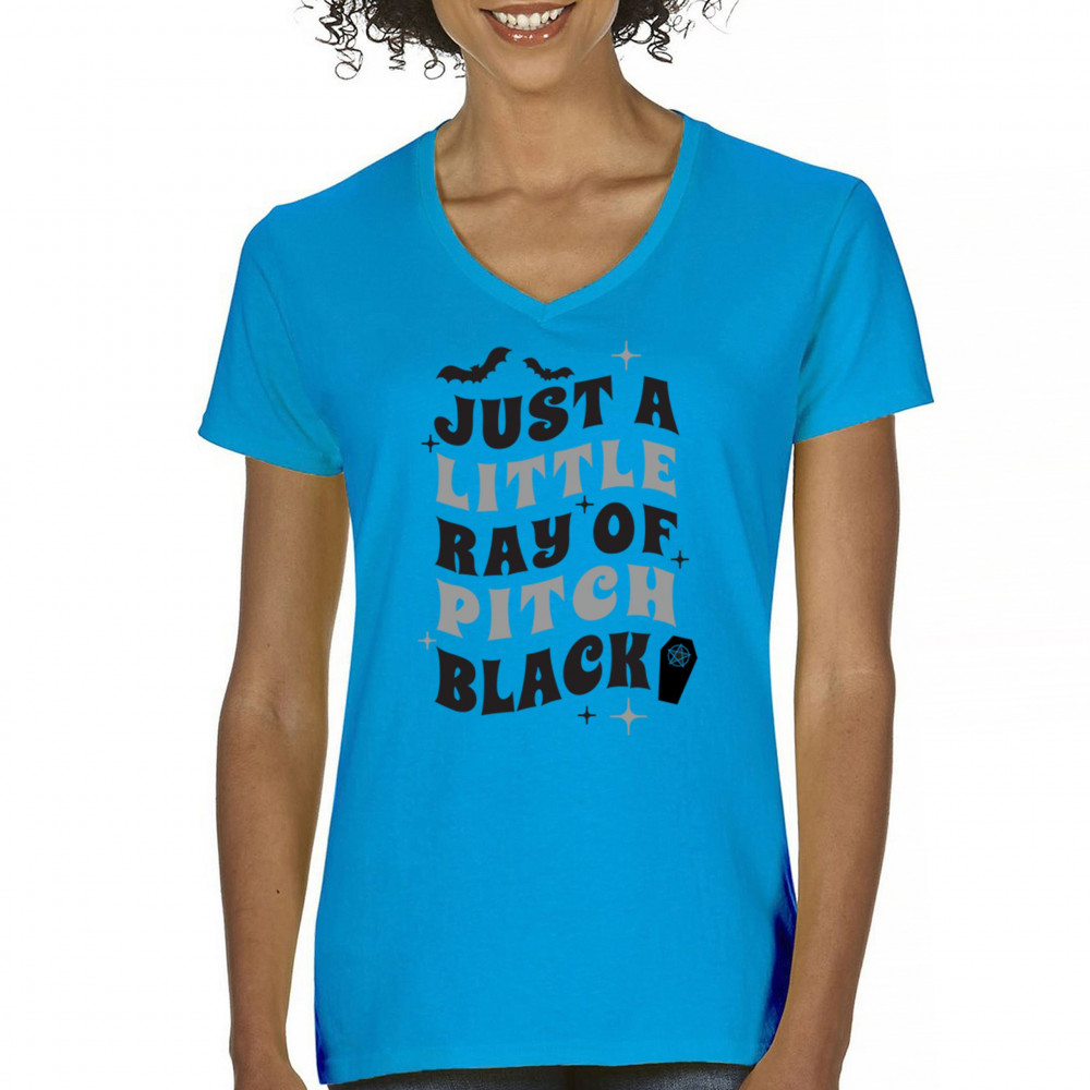 Showcase your dark humor with the "Just a Little Ray of Pitch Black" design—perfect for Halloween or everyday gothic style.