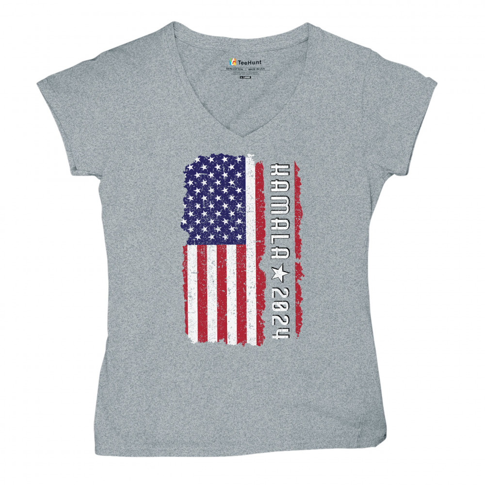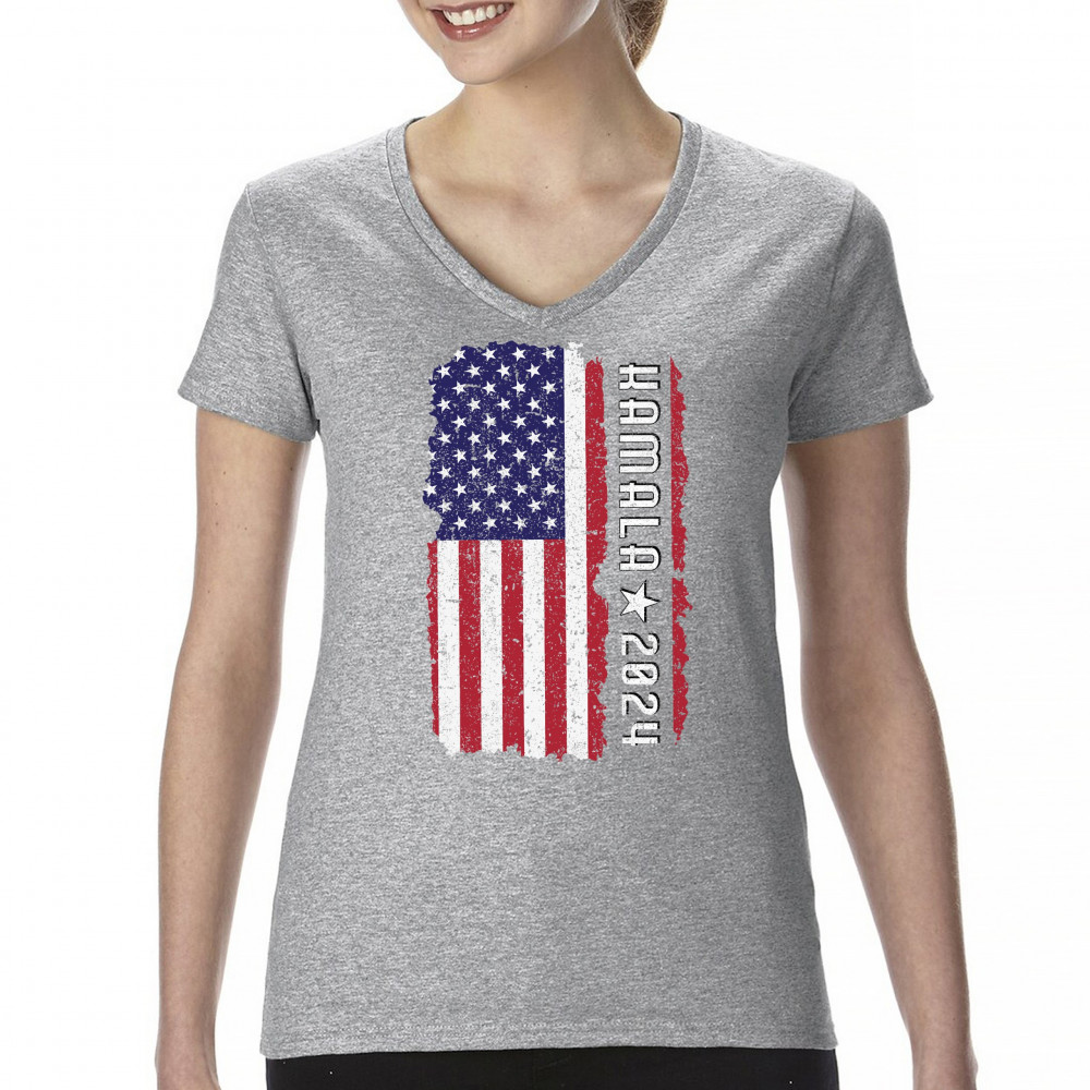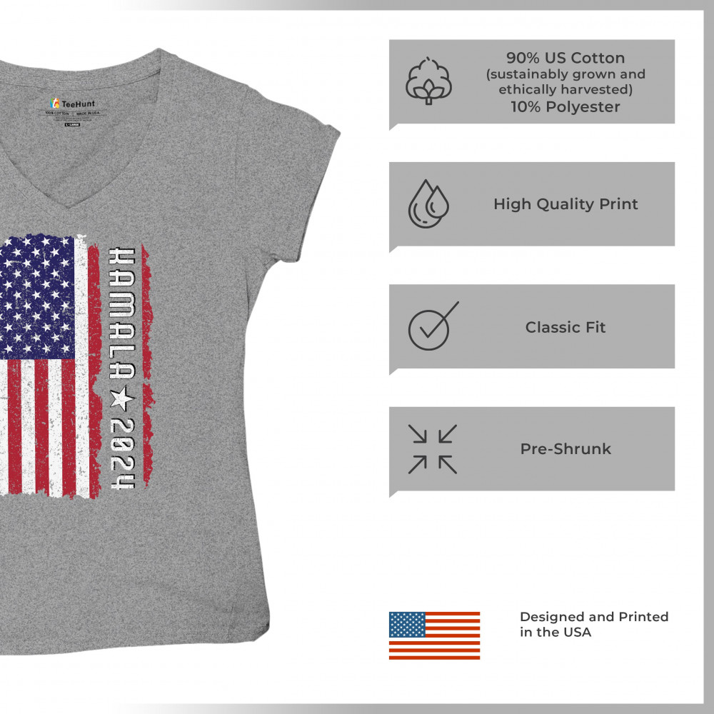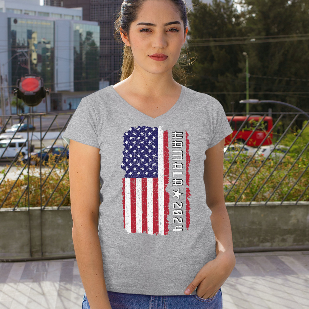 Support Kamala Harris 2024 with a bold design featuring a distressed American flag. Perfect for rallies and political events. Celebrate diversity!