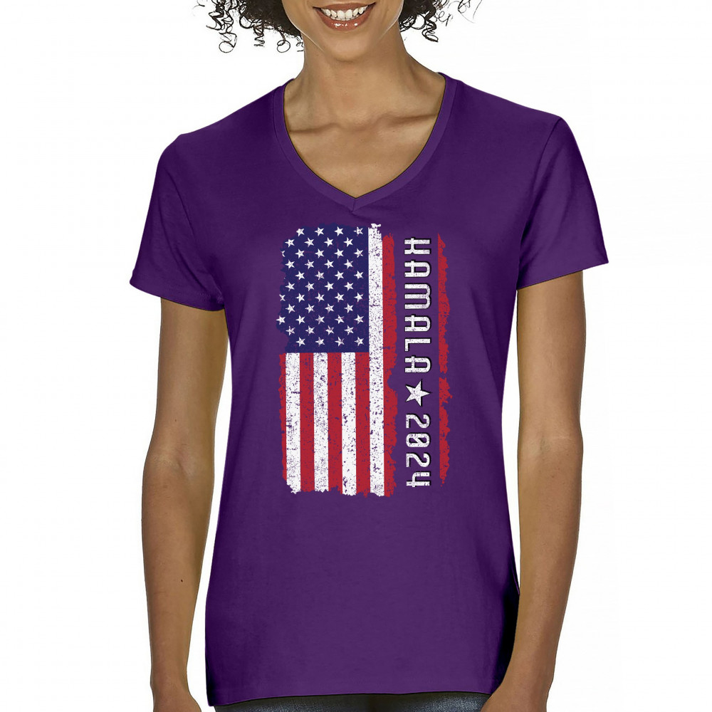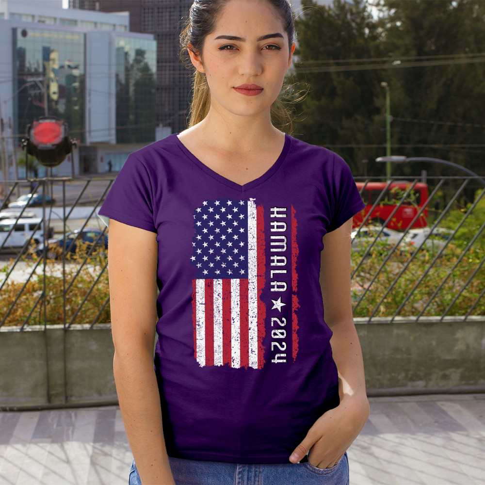 Support Kamala Harris 2024 with a bold design featuring a distressed American flag. Perfect for rallies and political events. Celebrate diversity!