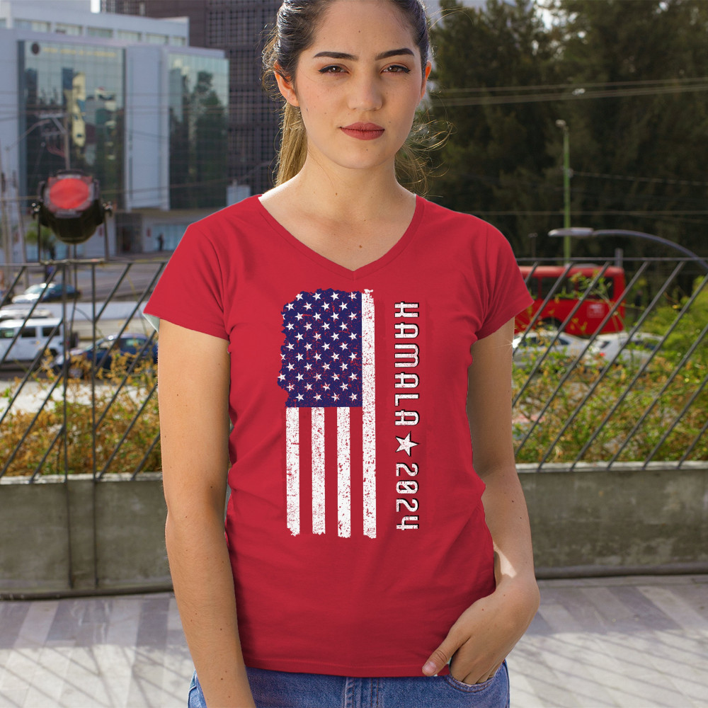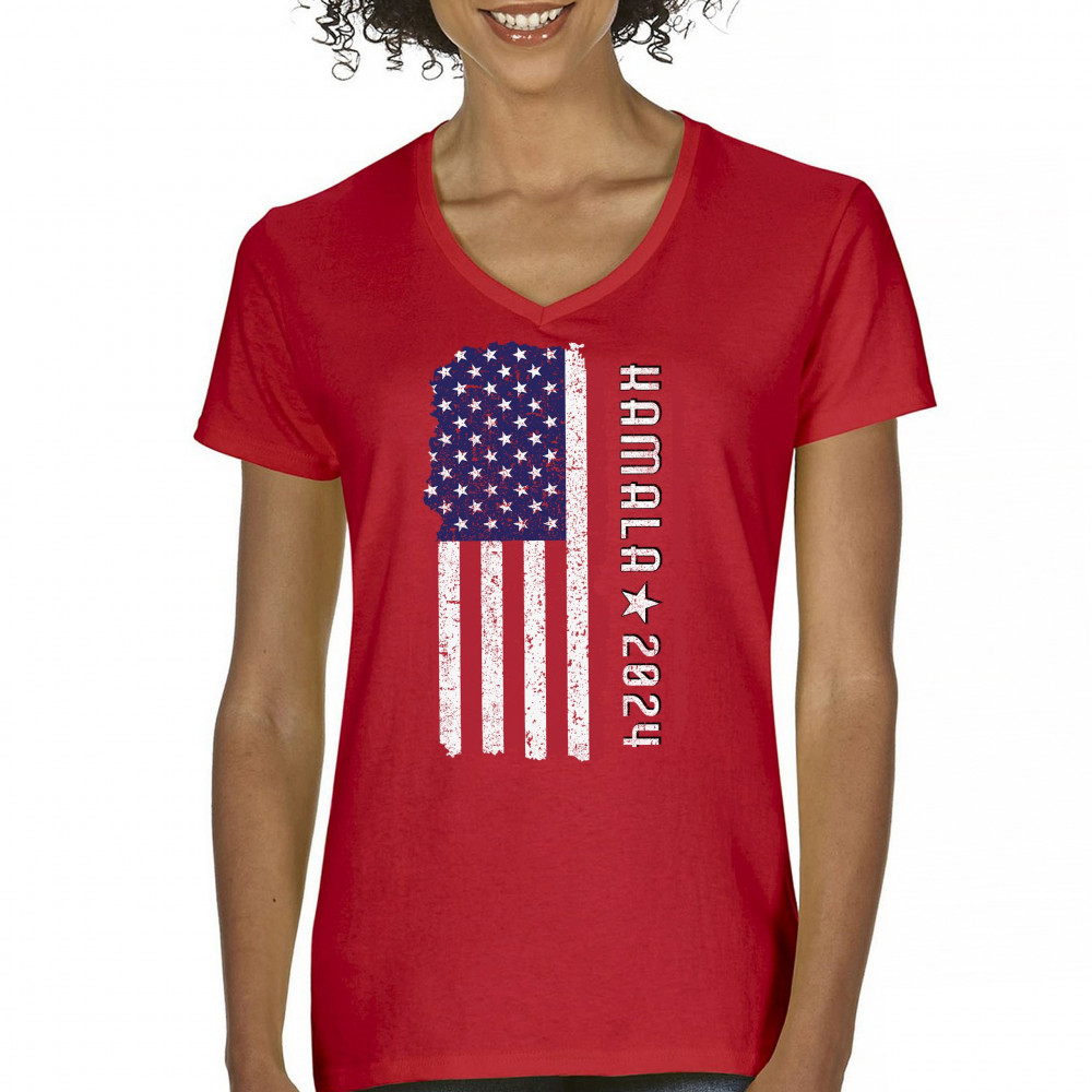 Support Kamala Harris 2024 with a bold design featuring a distressed American flag. Perfect for rallies and political events. Celebrate diversity!