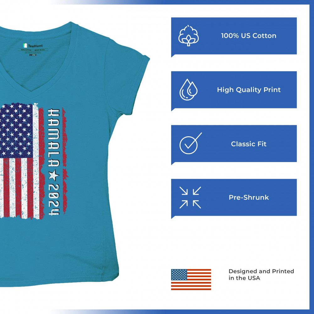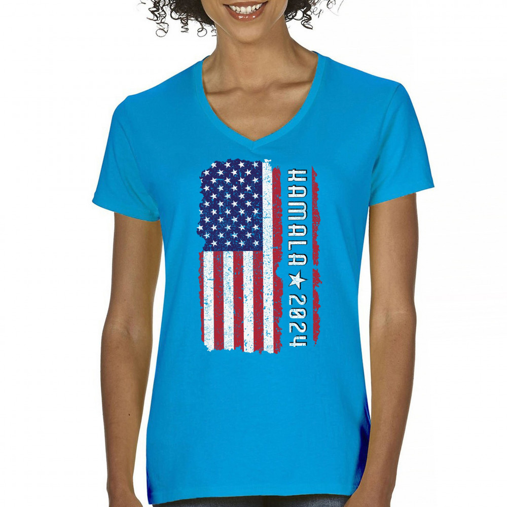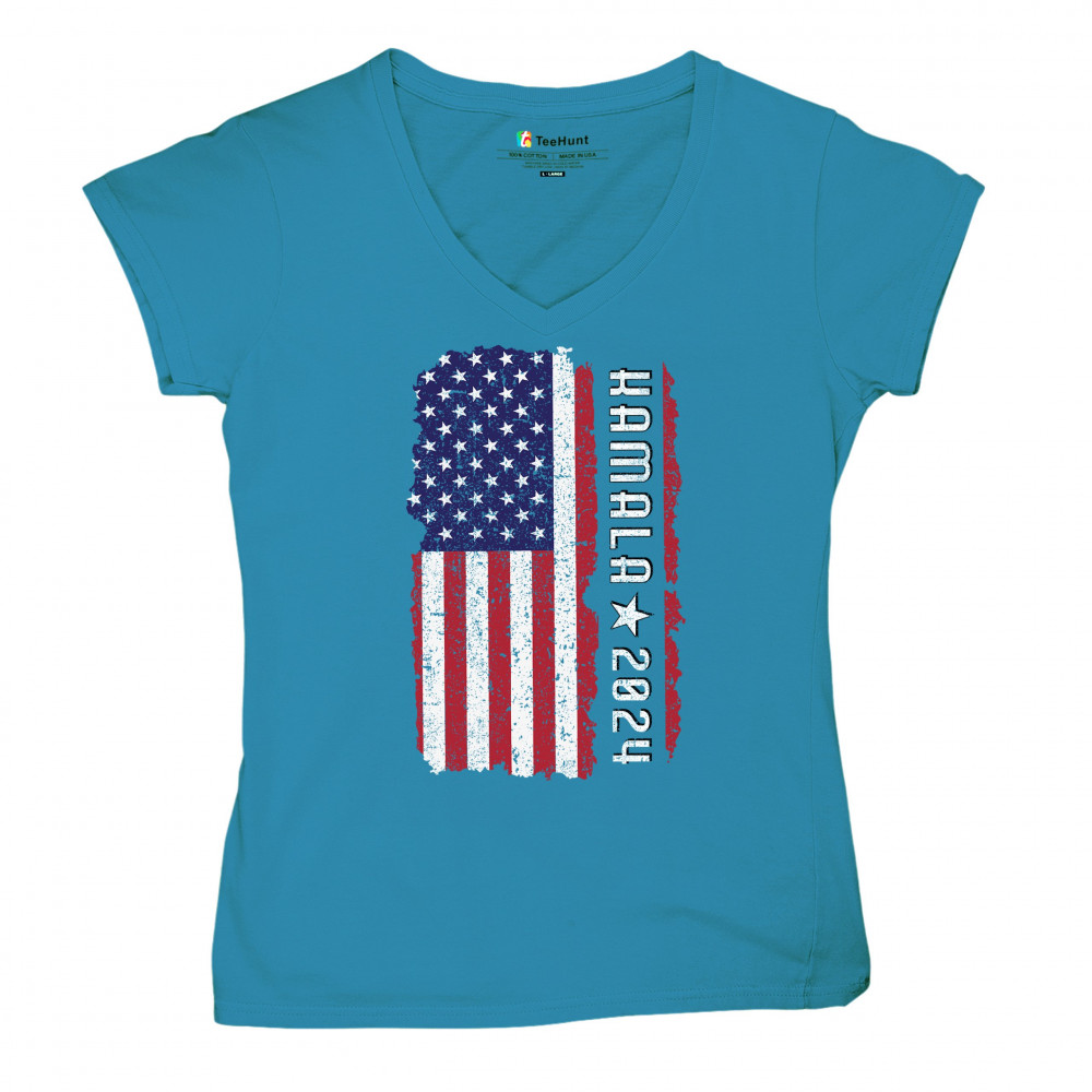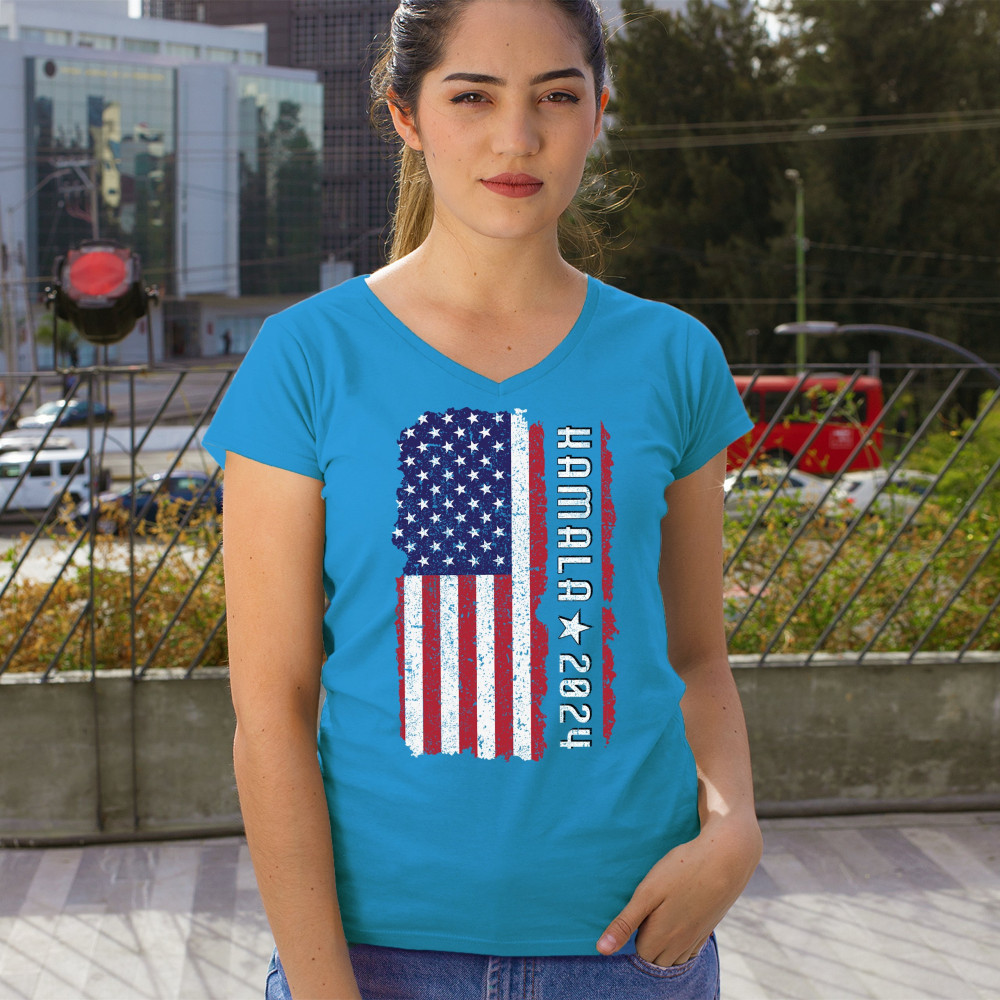 Support Kamala Harris 2024 with a bold design featuring a distressed American flag. Perfect for rallies and political events. Celebrate diversity!
