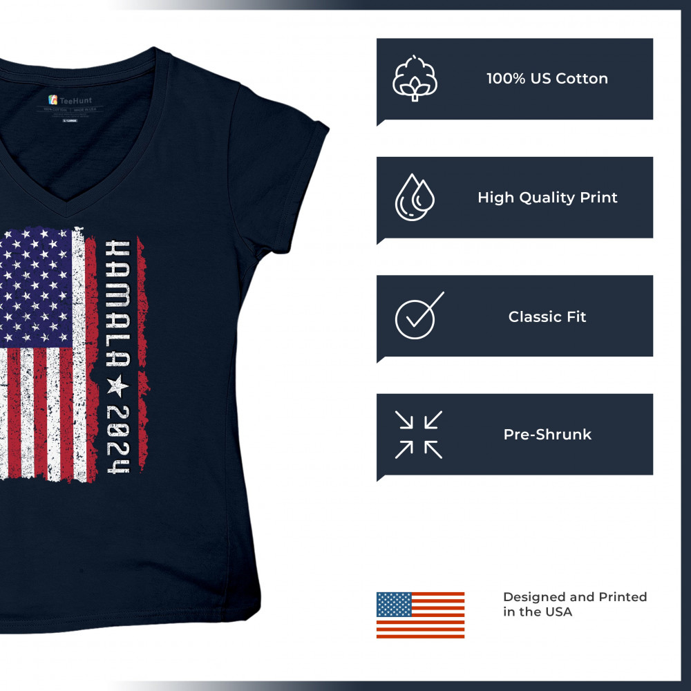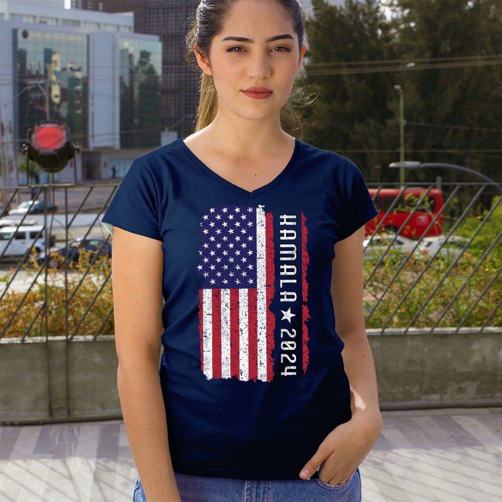 Support Kamala Harris 2024 with a bold design featuring a distressed American flag. Perfect for rallies and political events. Celebrate diversity!