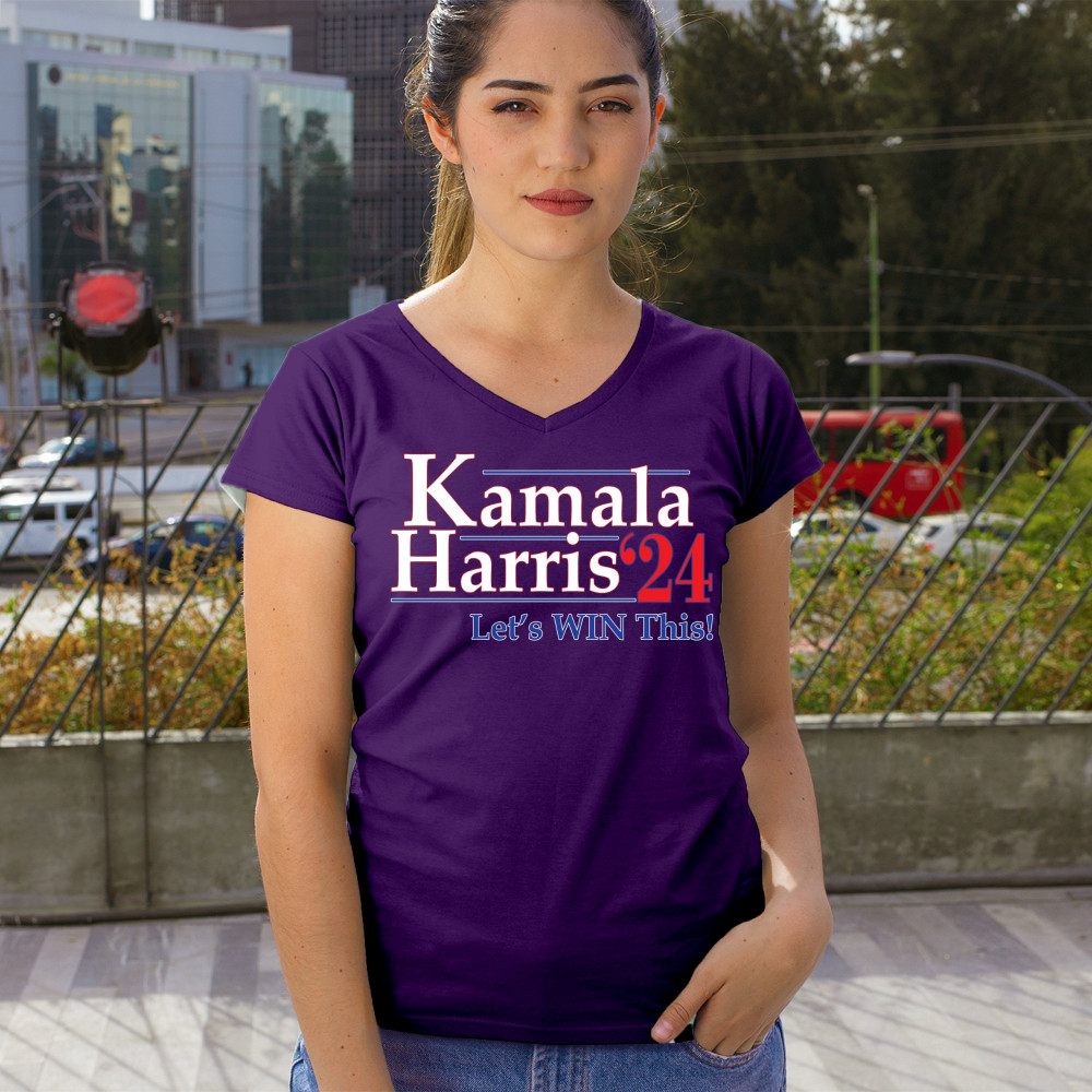 Support Kamala Harris's 2024 campaign with this bold design featuring "Let's WIN This!" Perfect for rallies, elections, and everyday wear.