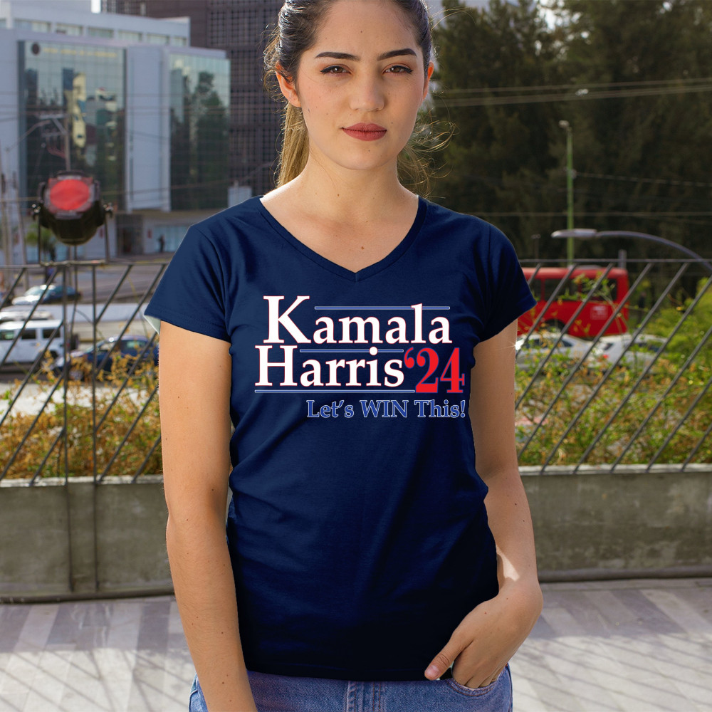 Support Kamala Harris's 2024 campaign with this bold design featuring "Let's WIN This!" Perfect for rallies, elections, and everyday wear.