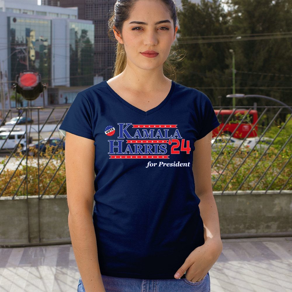 Support Kamala Harris for President in 2024 with this bold, patriotic design. Perfect for liberals, Democrats, and minority communities.