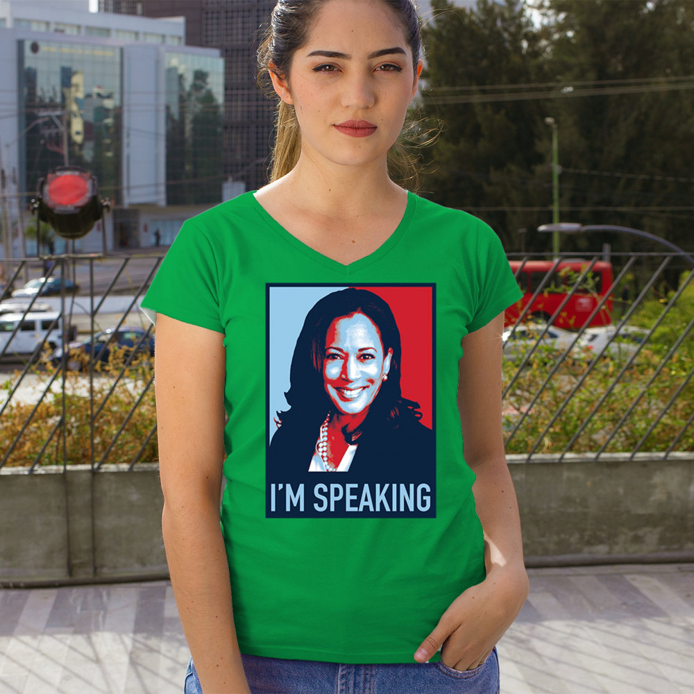 Show your support for Kamala Harris and Tim Walz with this "I'm Speaking" design. A bold statement celebrating liberal values and progressive policies. "Let's Win This"
