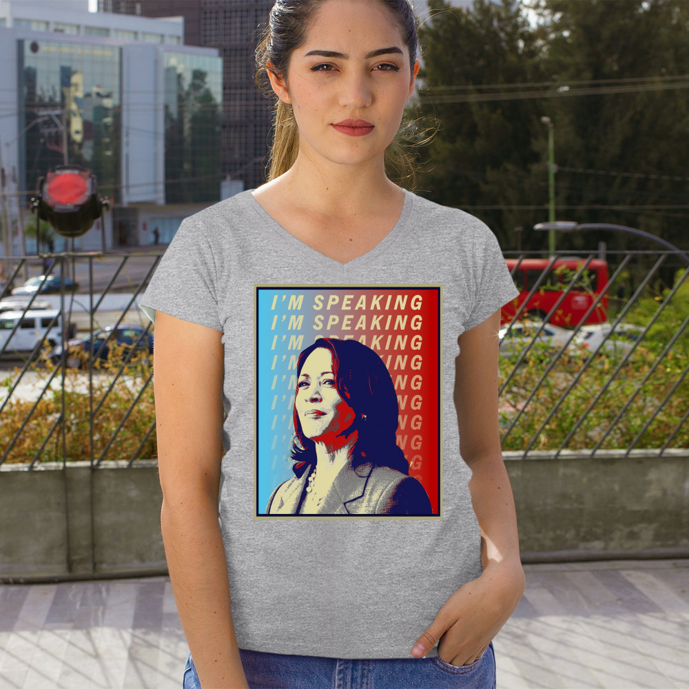 Support Kamala Harris with this bold and inspiring design. "I'M SPEAKING" echoes her powerful voice in the political arena, making it perfect for anti-Trump supporters, liberals, and Democrats. Crafted from durable materials, this design is comfortable for any event, from rallies to casual outings. Celebrate diversity and the historic candidacy of the potential first female president, resonating with black Americans, Hispanic Americans, LGBTQ supporters, and other minorities. Make a statement of hope and progress with this unique design.