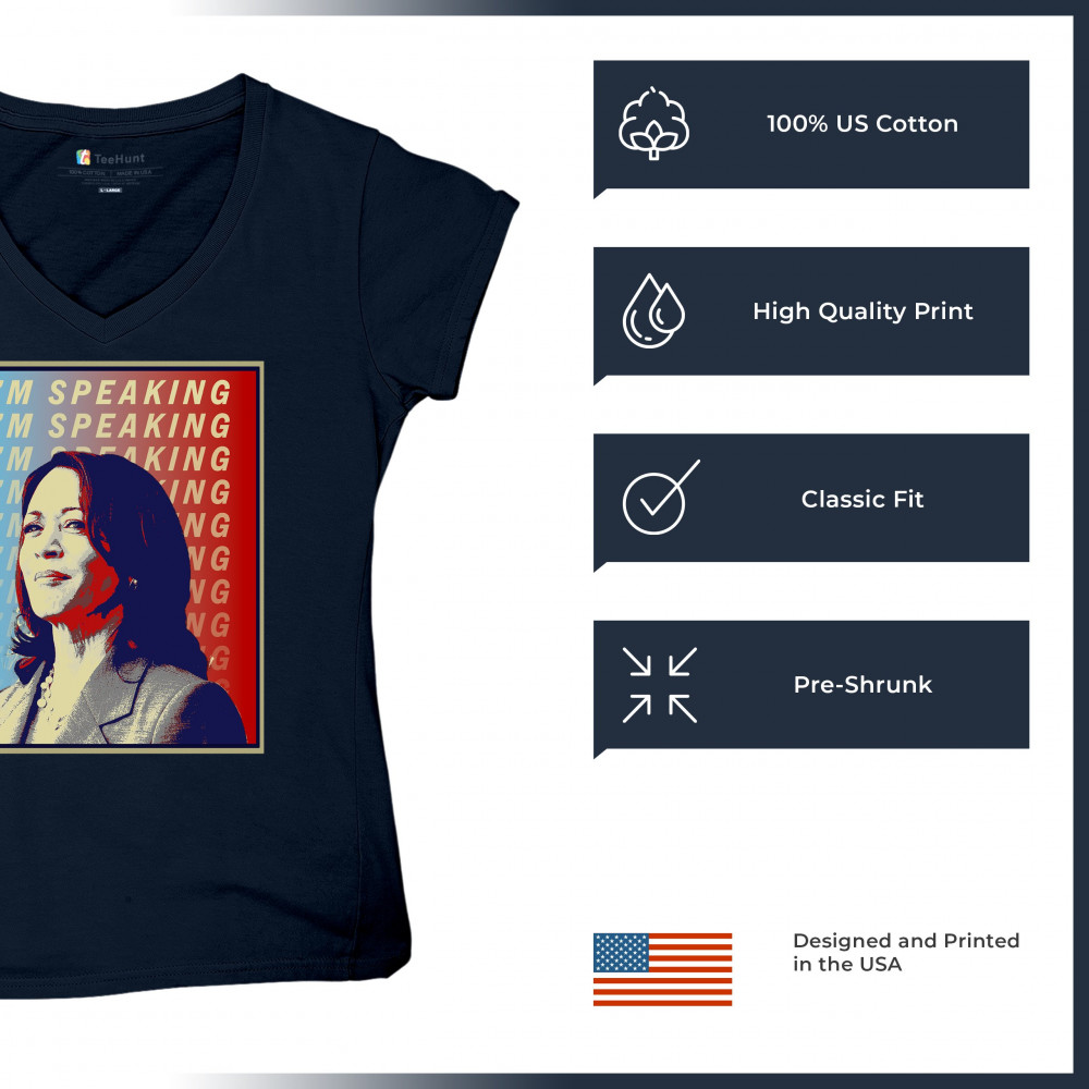 Support Kamala Harris with this bold and inspiring design. "I'M SPEAKING" echoes her powerful voice in the political arena, making it perfect for anti-Trump supporters, liberals, and Democrats. Crafted from durable materials, this design is comfortable for any event, from rallies to casual outings. Celebrate diversity and the historic candidacy of the potential first female president, resonating with black Americans, Hispanic Americans, LGBTQ supporters, and other minorities. Make a statement of hope and progress with this unique design.