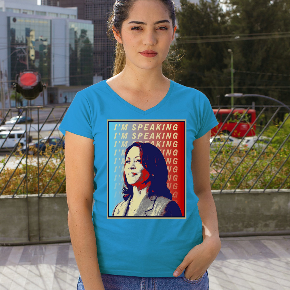 Support Kamala Harris with this bold and inspiring design. "I'M SPEAKING" echoes her powerful voice in the political arena, making it perfect for anti-Trump supporters, liberals, and Democrats. Crafted from durable materials, this design is comfortable for any event, from rallies to casual outings. Celebrate diversity and the historic candidacy of the potential first female president, resonating with black Americans, Hispanic Americans, LGBTQ supporters, and other minorities. Make a statement of hope and progress with this unique design.
