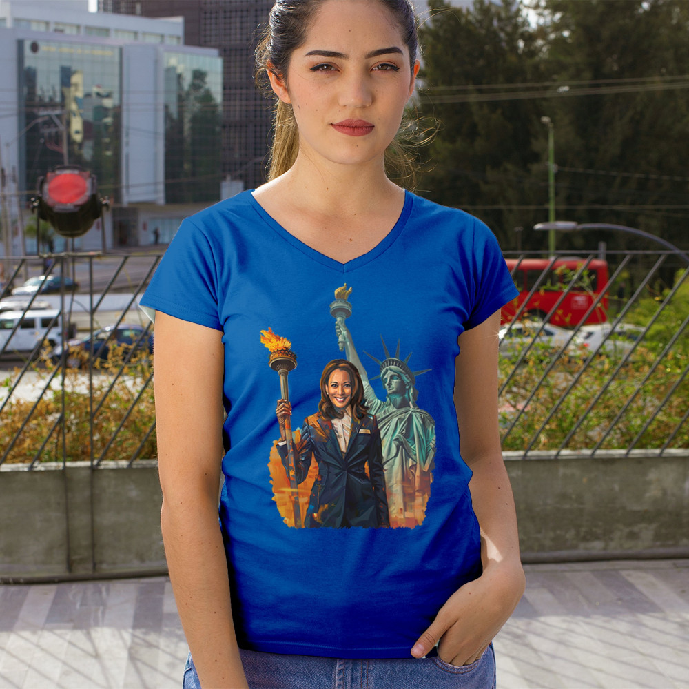 Show your support for Harris-Walz 2024 with this bold design featuring Kamala Harris and the Statue of Liberty. Stand for justice, equality, and a brighter future.