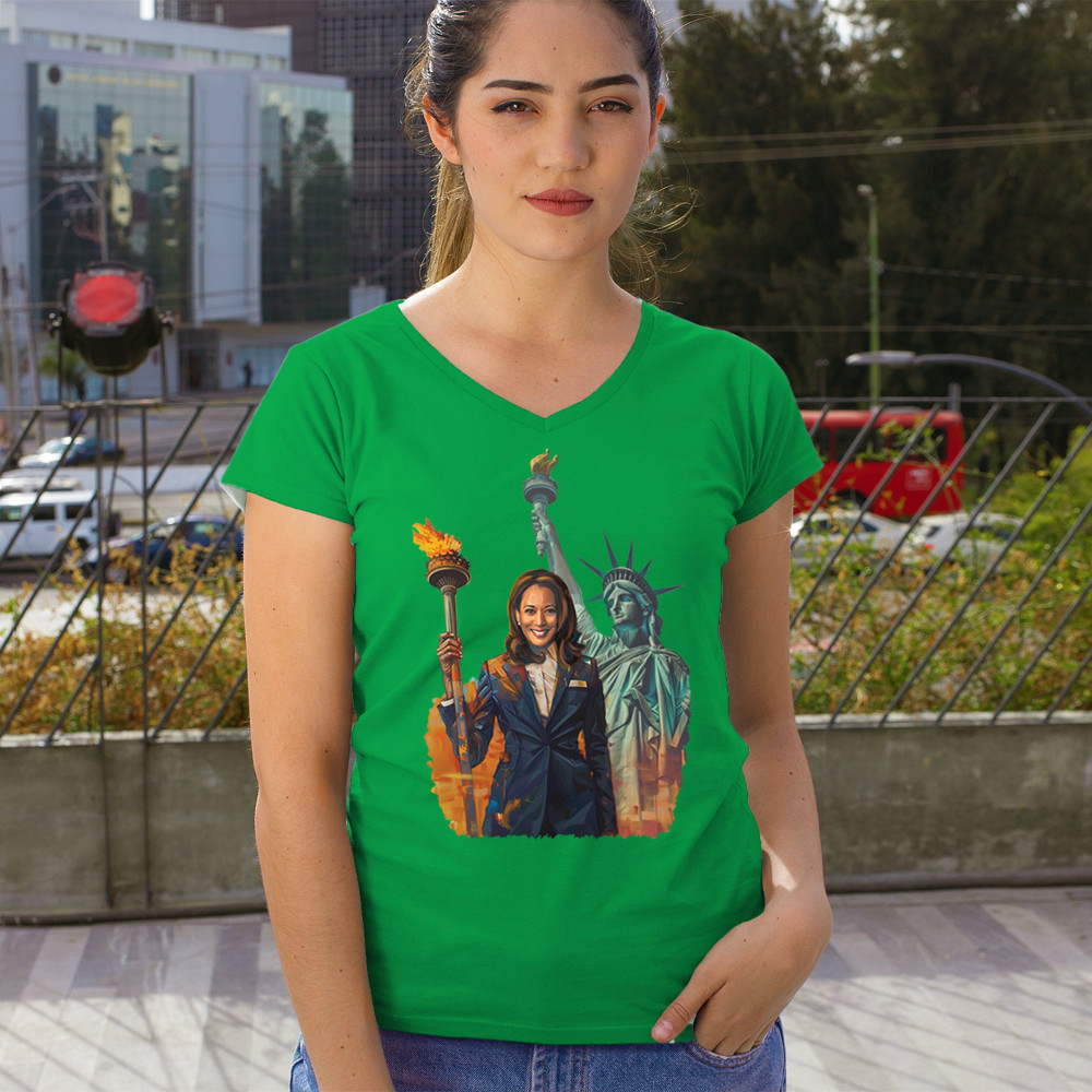 Show your support for Harris-Walz 2024 with this bold design featuring Kamala Harris and the Statue of Liberty. Stand for justice, equality, and a brighter future.