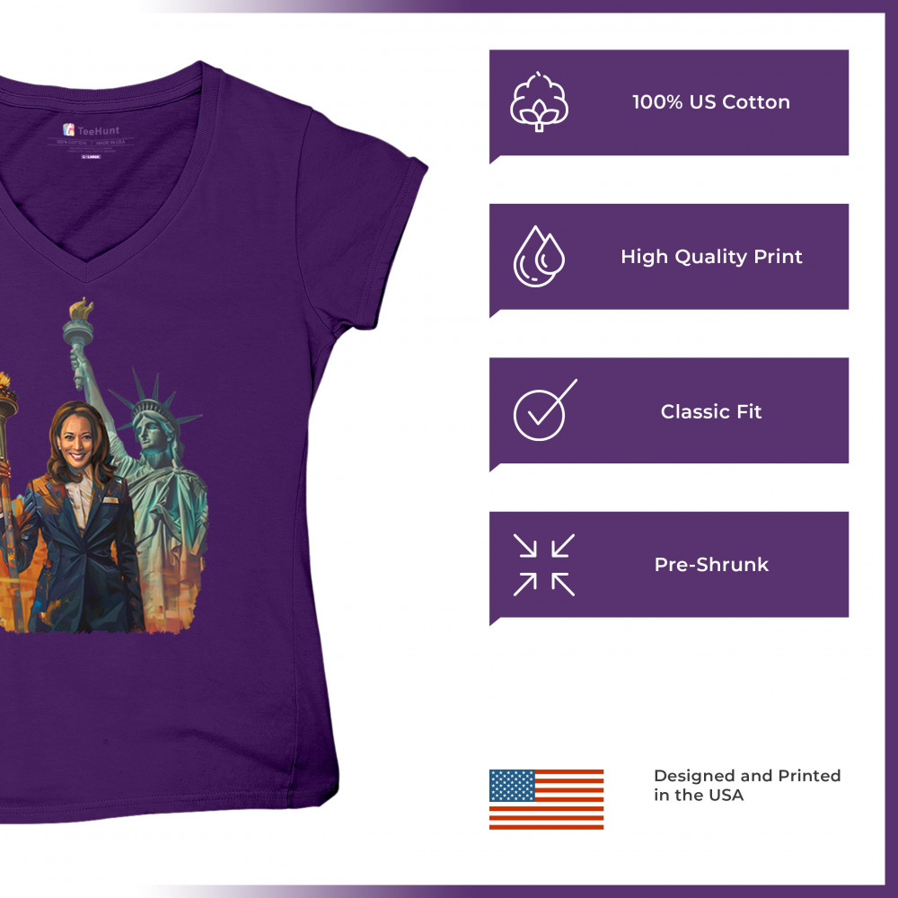 Show your support for Harris-Walz 2024 with this bold design featuring Kamala Harris and the Statue of Liberty. Stand for justice, equality, and a brighter future.