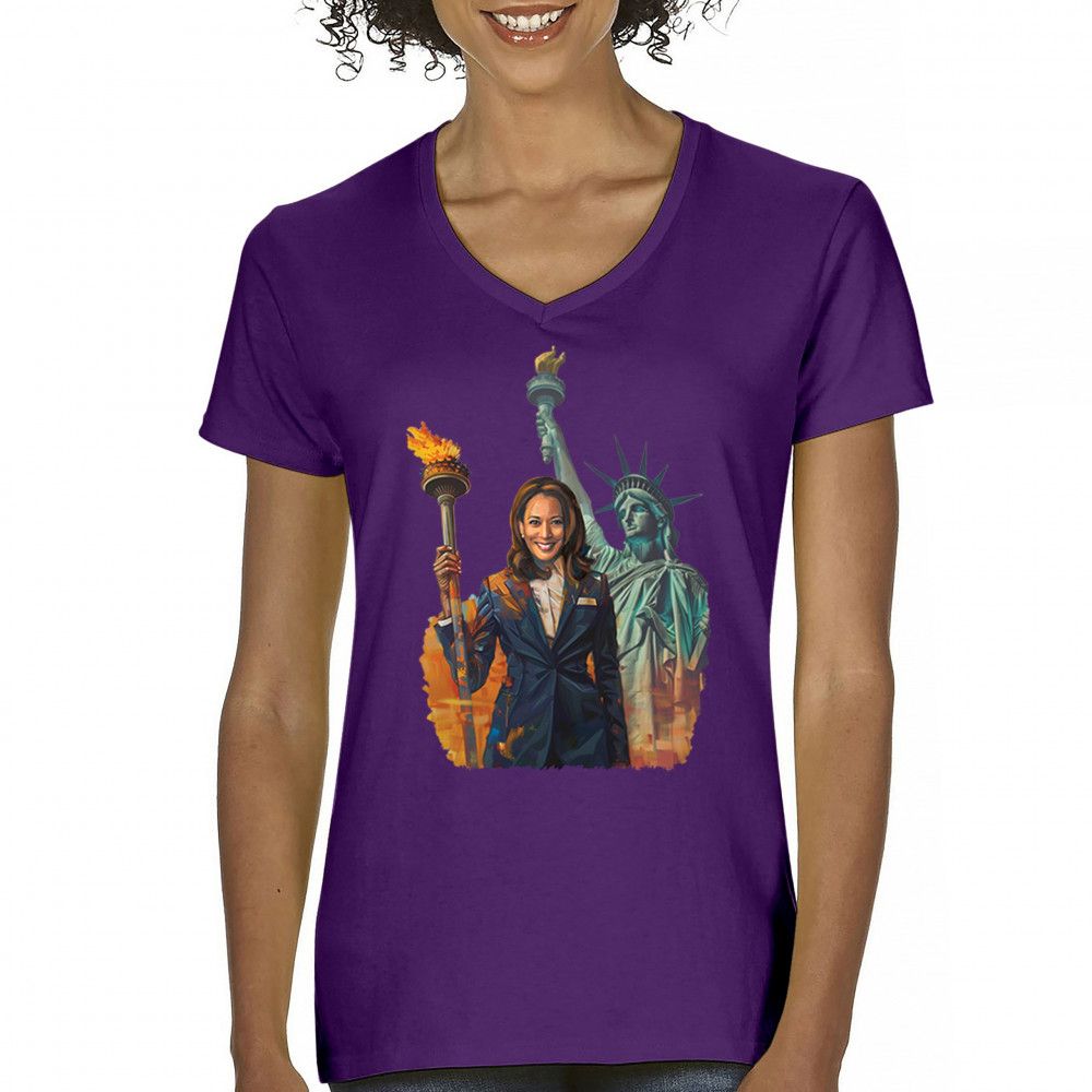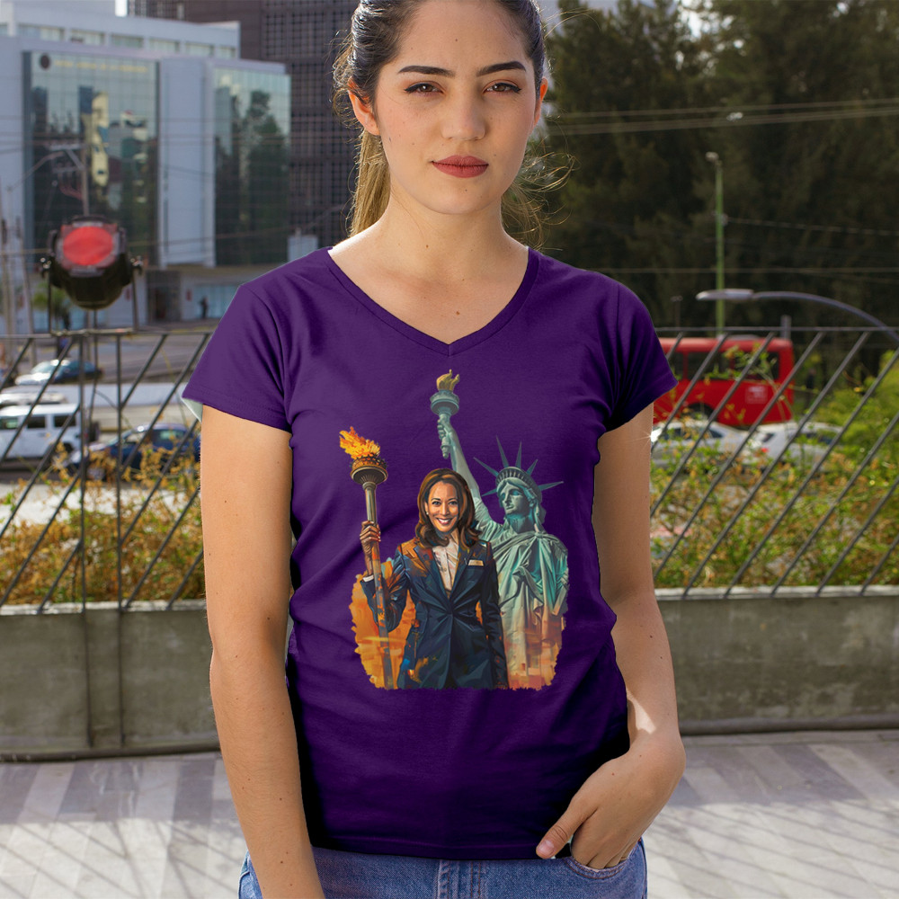 This powerful design featuring Kamala Harris and the Statue of Liberty symbolizes the fight for justice, equality, and a brighter future in the Harris-Walz 2024 campaign. Perfect for rallies, events, and daily wear, this design speaks to supporters of women's rights and liberal values. Show your commitment to a better America with this striking image. Wear it with pride and be part of the movement.