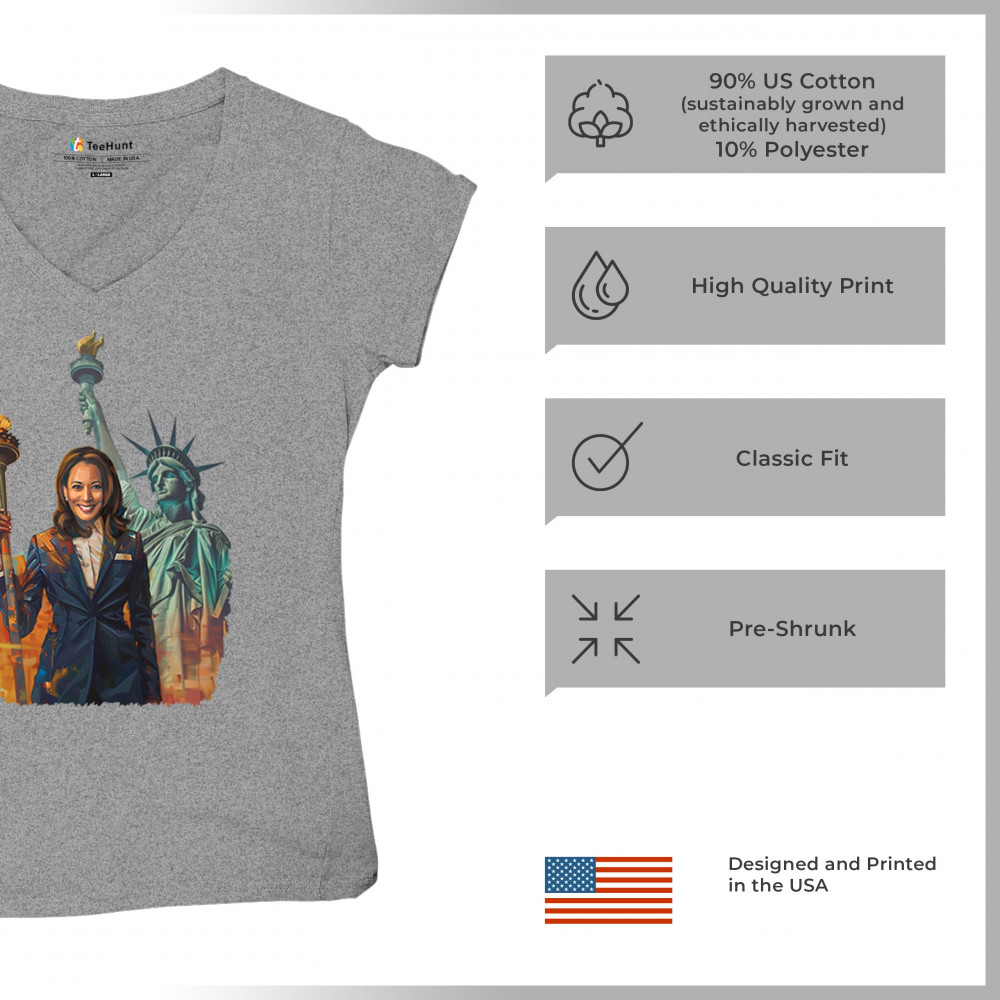 Show your support for Harris-Walz 2024 with this bold design featuring Kamala Harris and the Statue of Liberty. Stand for justice, equality, and a brighter future.