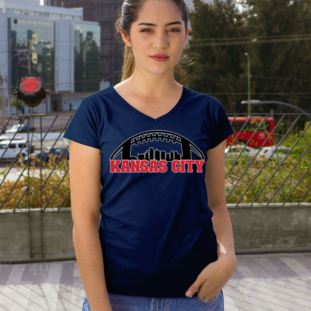 Celebrate Kansas City with a bold football design featuring the city skyline. Perfect for game days, tailgates, or proud sports fans.