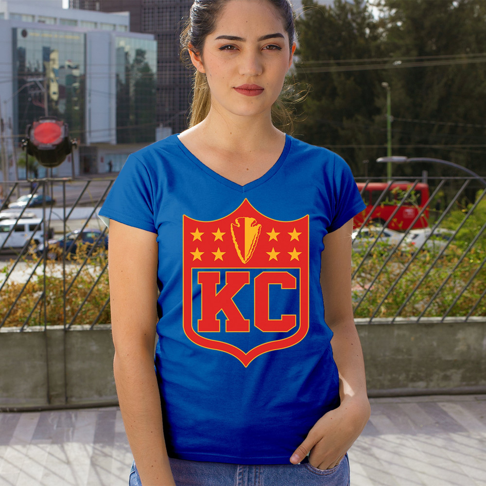 Kansas KC shield design celebrating red and gold pride, heart of America football, playoff vibes, river city culture, and big game energy.