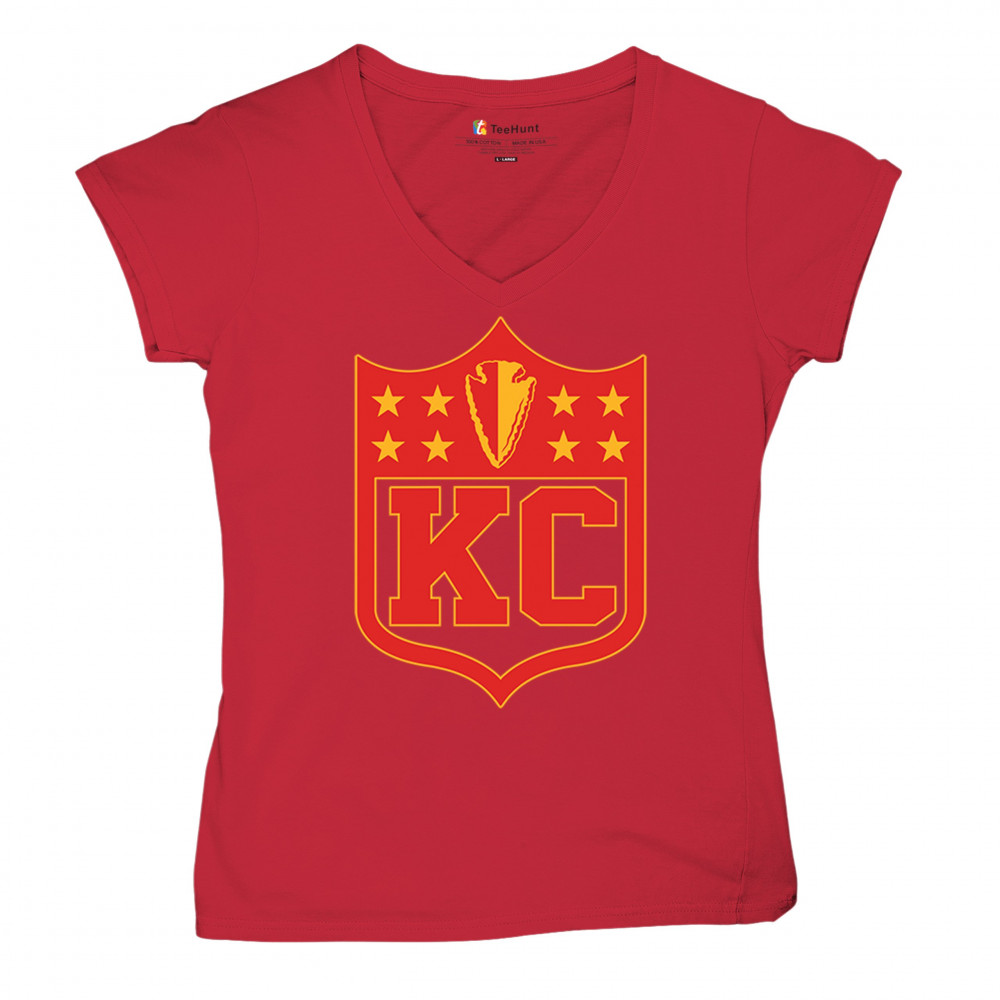 Kansas KC shield design celebrating red and gold pride, heart of America football, playoff vibes, river city culture, and big game energy.