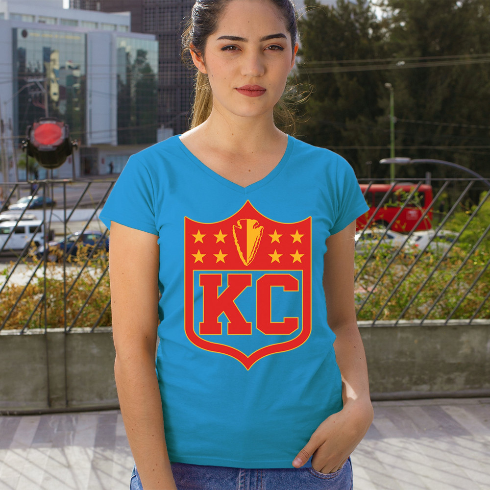 Kansas KC shield design celebrating red and gold pride, heart of America football, playoff vibes, river city culture, and big game energy.