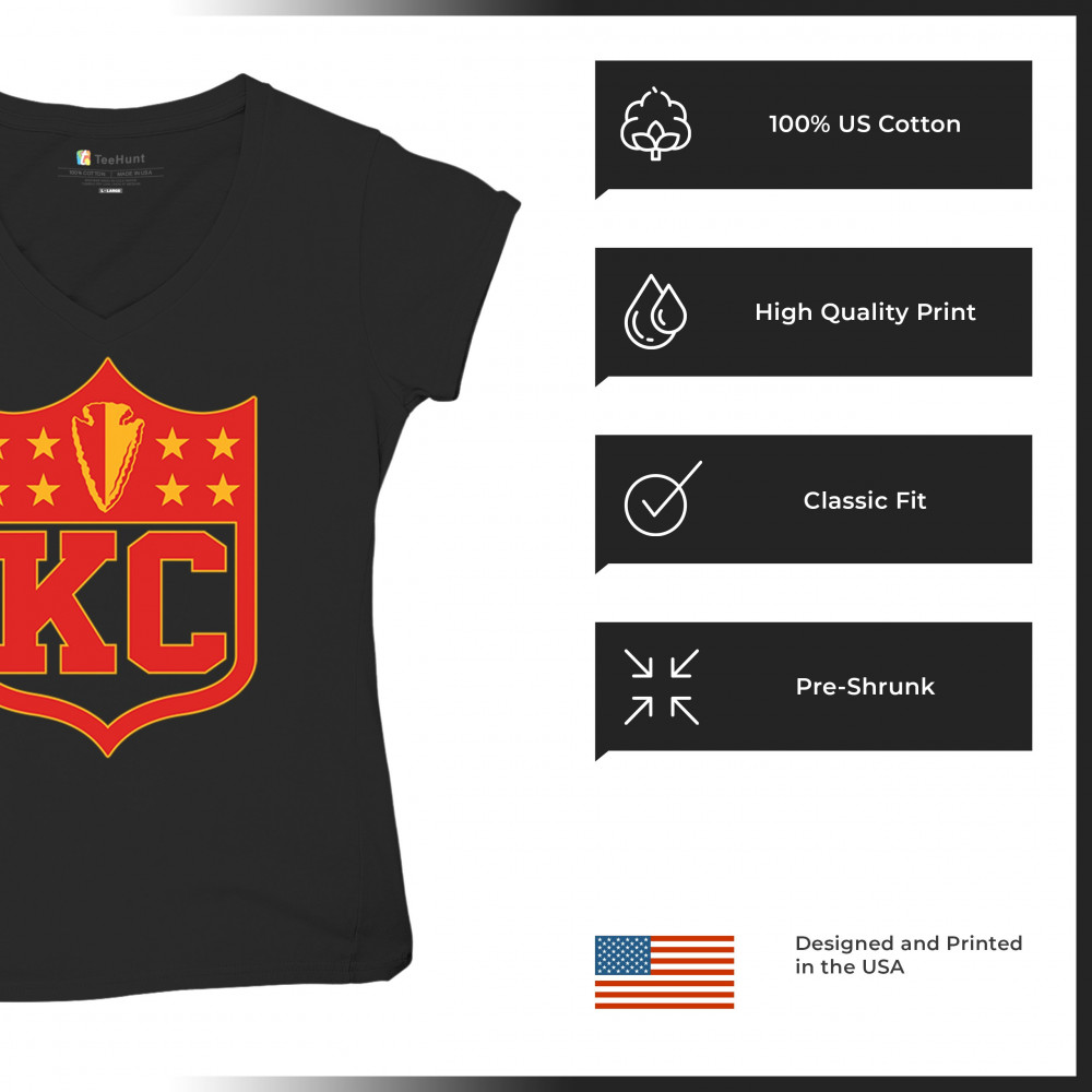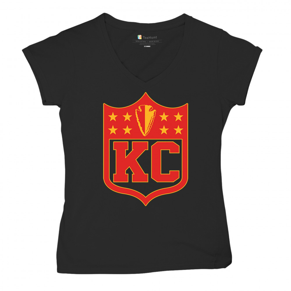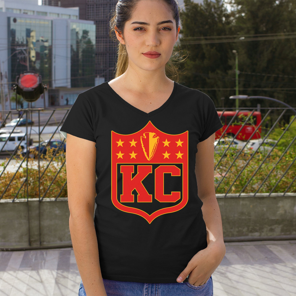 KANSAS CITY SHIELD women's v-neck t-shirt fantasy league football fan tailgate black